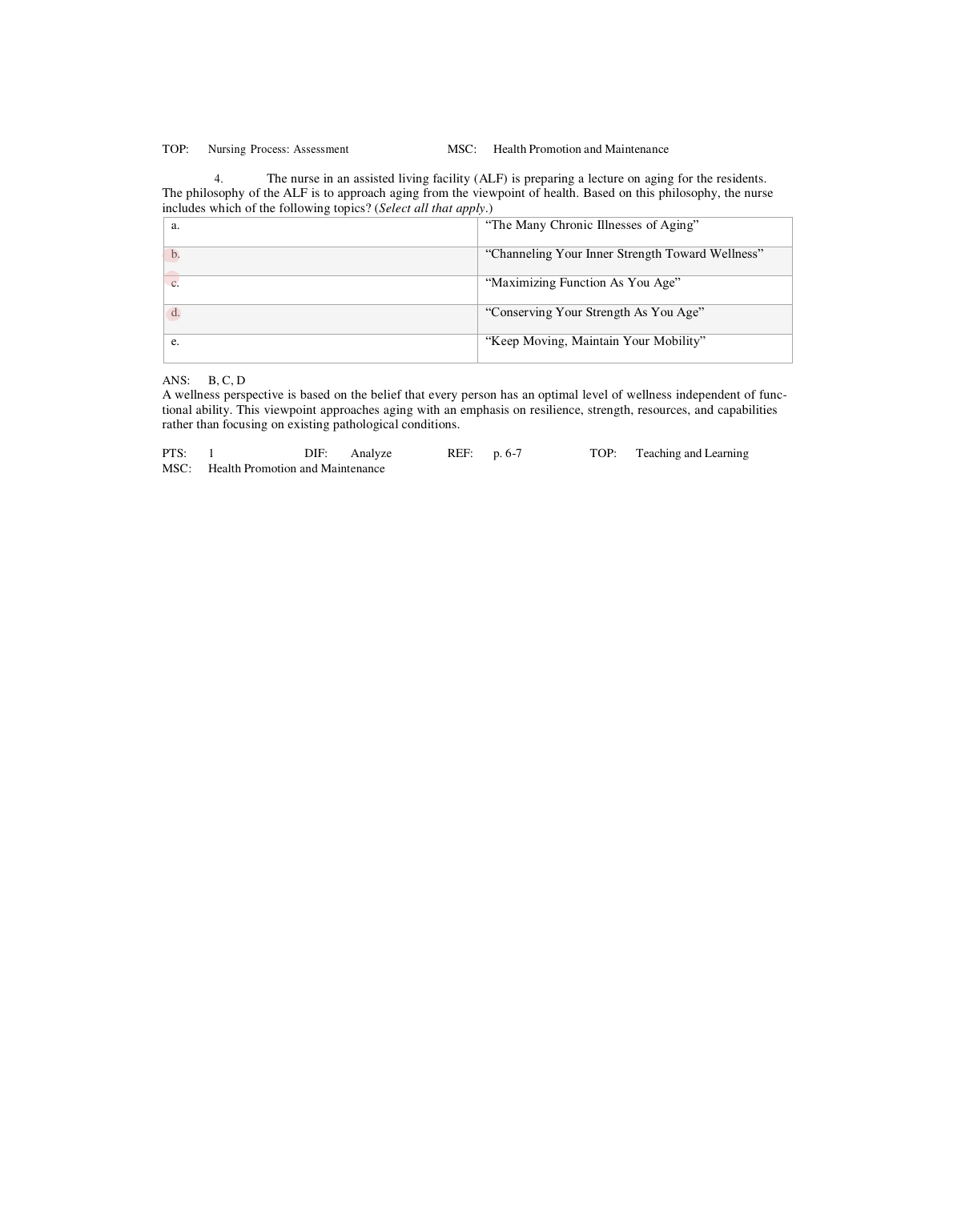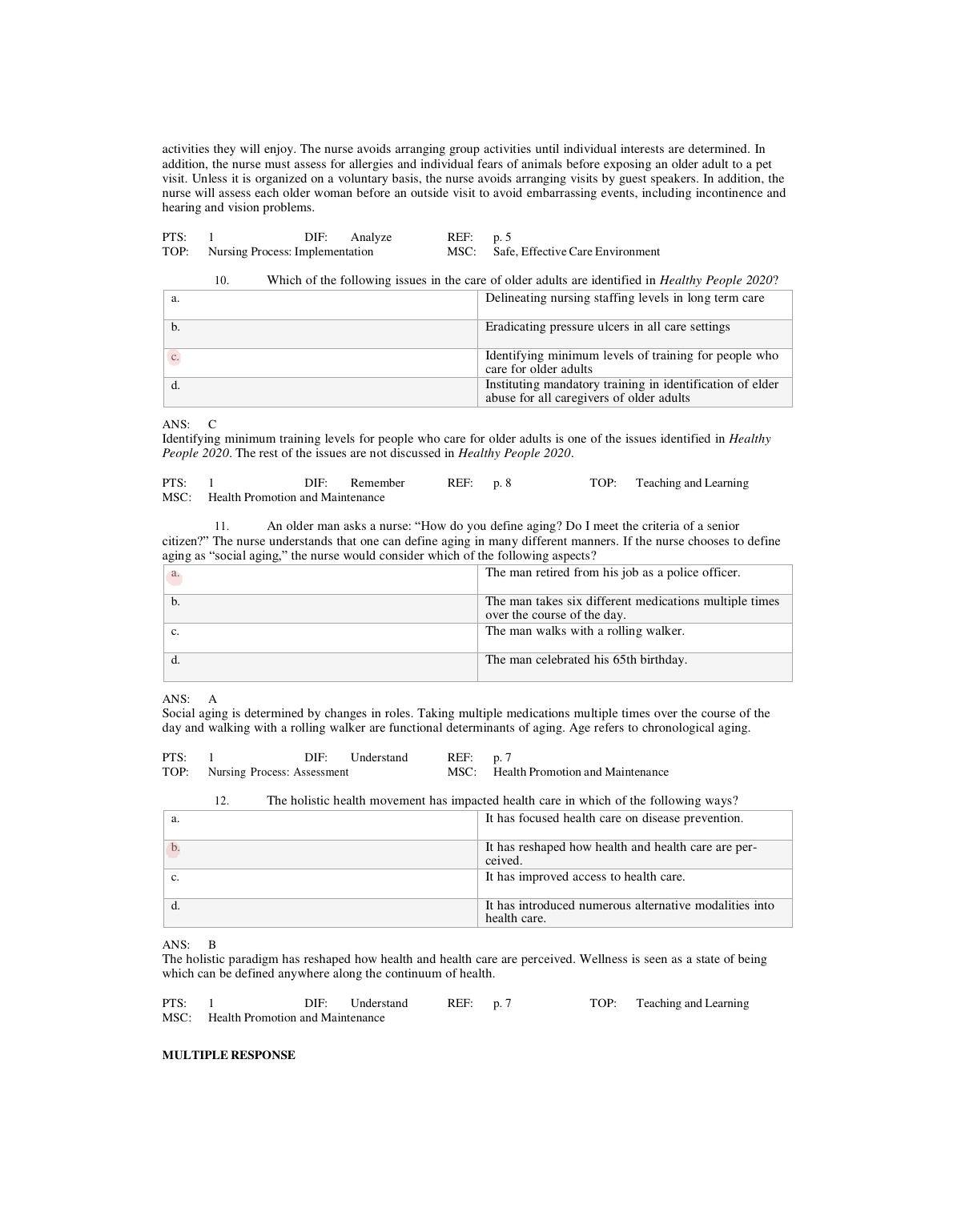 TEST BANK: Touhy & Jett: Ebersole and Hess’ Gerontological Nursing & Healthy Aging, 5th Edition