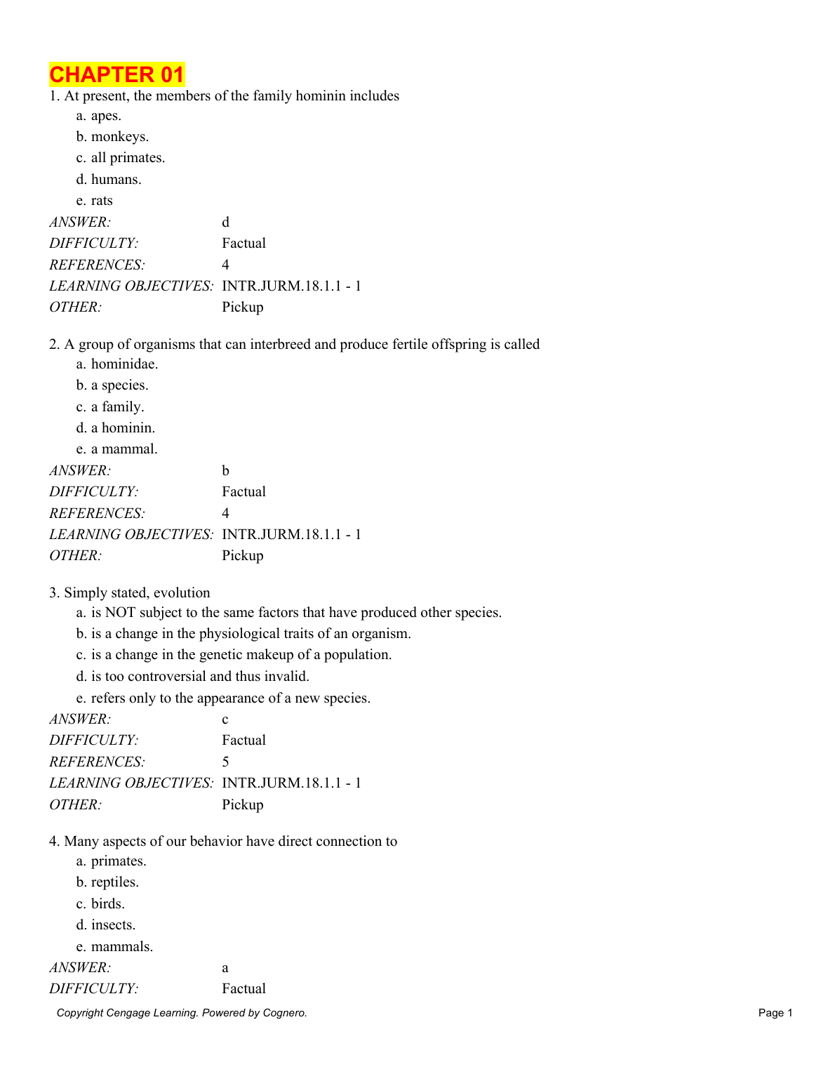 COMPLETE Elaborated Test Bank for Introduction to Physical Anthropology 15Ed. by Robert Jurmain, Lynn Kilgore, Wenda Trevathan, Russell L. Ciochon & Eric Bartelink. DOWNLOAD on www.hackedexams.com INSTANTLY.