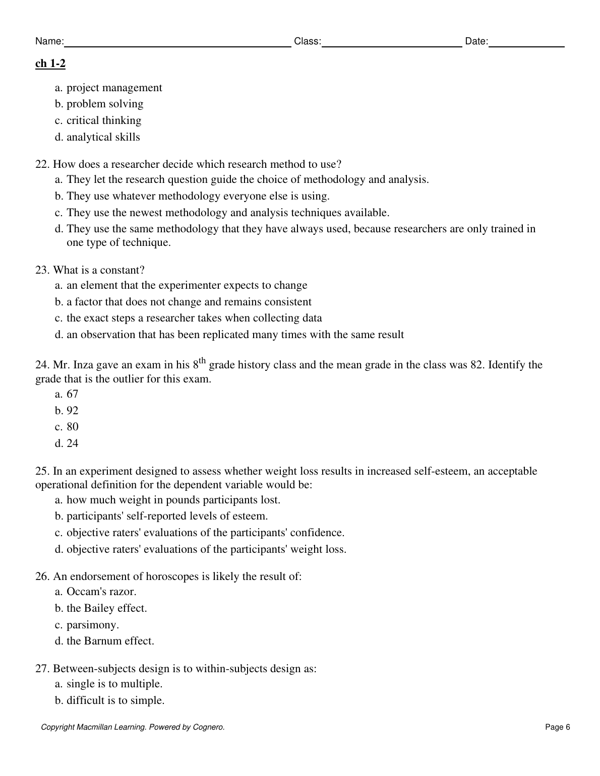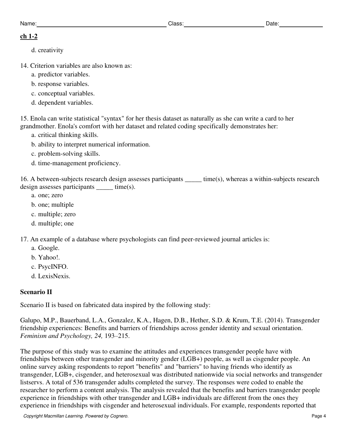 TEST BANK: Discovering the Scientist within Research Methods in Psychology 2ND EDITION BY Gary Lewandowski Natalie Ciarocco David Strohmetz
