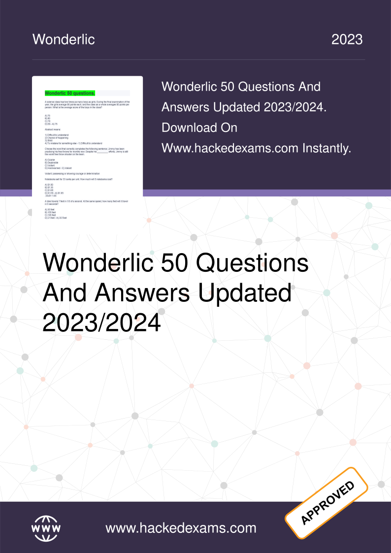 Ace your 2025 Wonderlic test on your first attempt with this comprehensive resource containing 100% accurate answers to a wide range of questions. Prepare effectively and avoid resits. This guide covers various question types to help you develop a thorough understanding of the test format and improve your overall score.