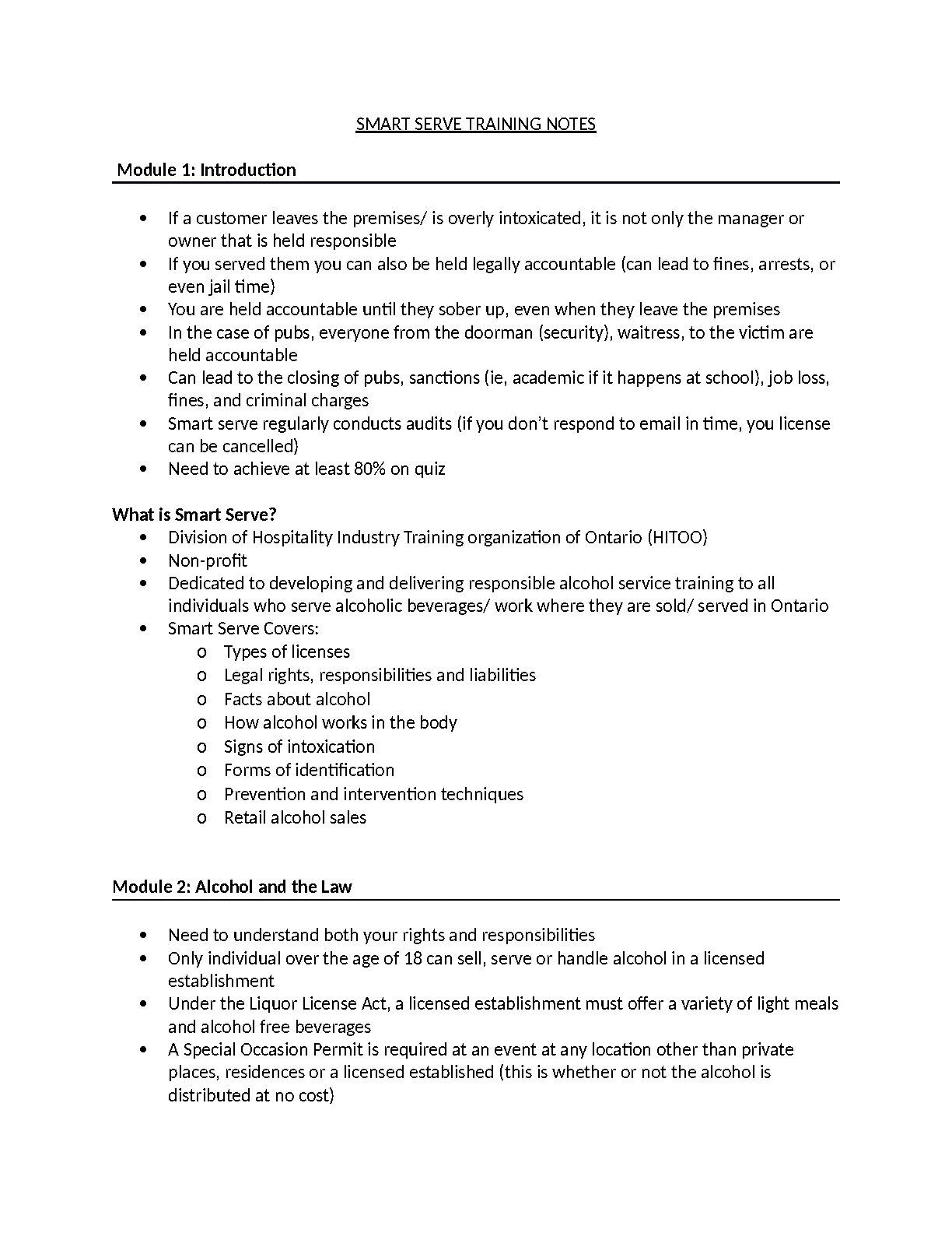 SMART SERVE TRAINING NOTES FOR 2023/2024. DOWNLOAD on www.hackedexams.com INSTANTLY.