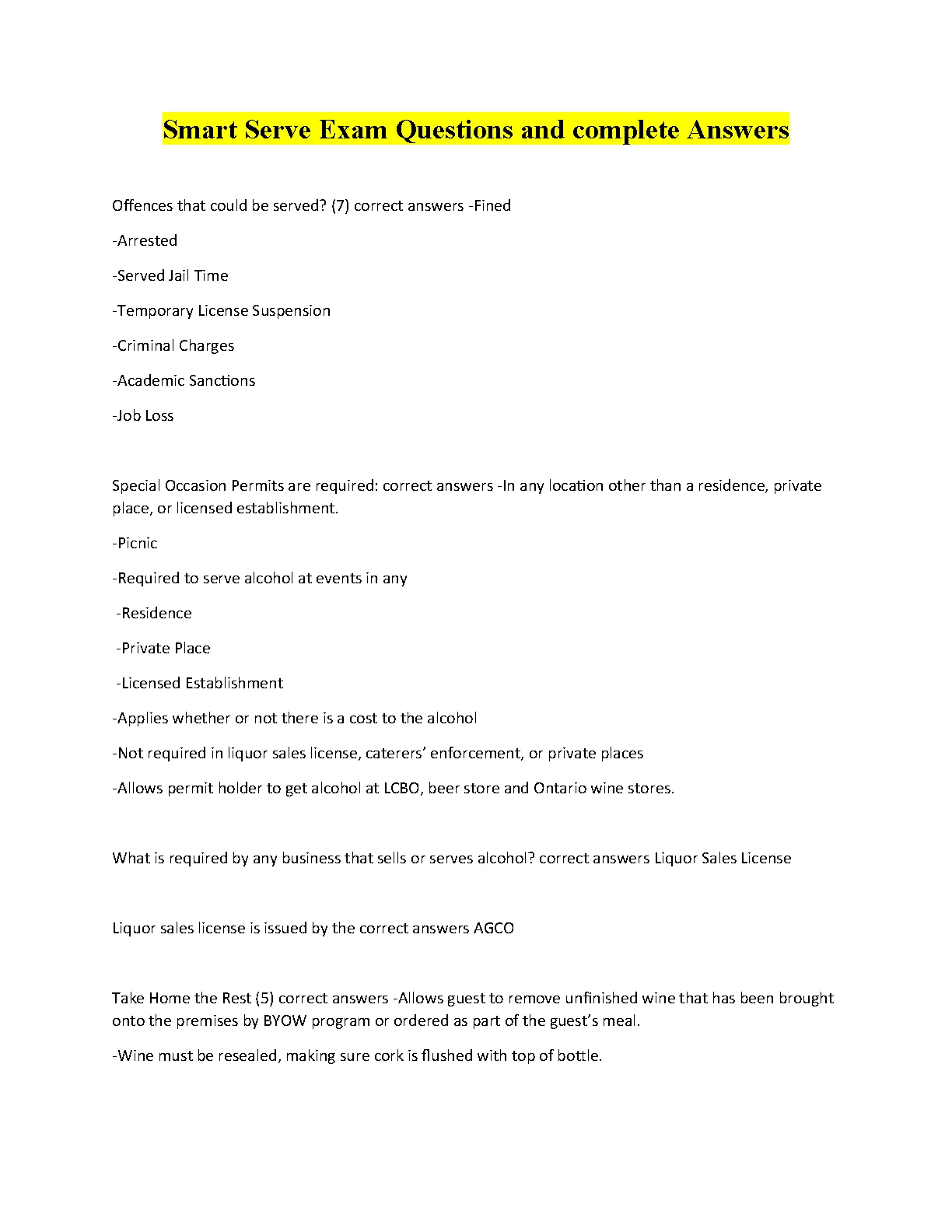 Smart Serve Exam Questions and Complete Answers 2023. DOWNLOAD on www.hackedexams.com INSTANTLY.