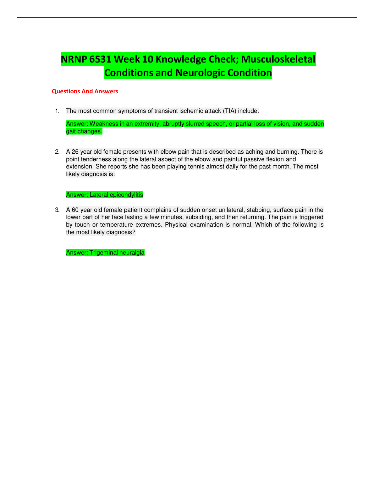 NRNP 6531 Week 10 Knowledge Check; Musculoskeletal Conditions and Neurologic Condition 2023/2024. DOWNLOAD on www.hackedexams.com INSTANTLY.