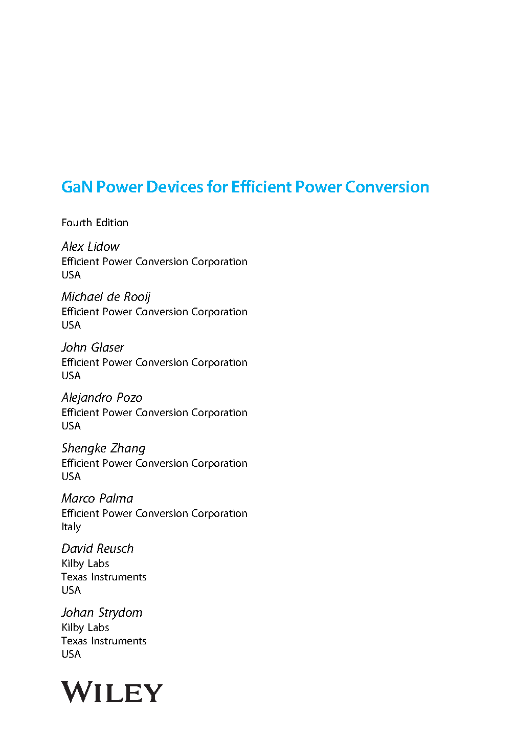 GaN Power Devices for Efficient Power Conversion, 4th Edition: Alex Lidow, Michael de Rooij, John Glaser, Alejandro Pozo, Shengke Zhang, Marco Palma, David Reusch, Johan Strydom