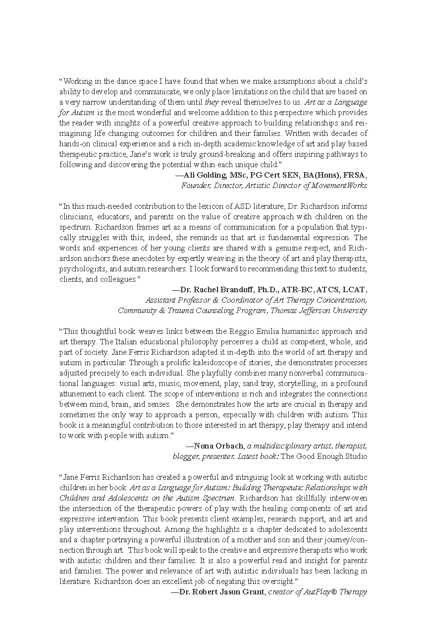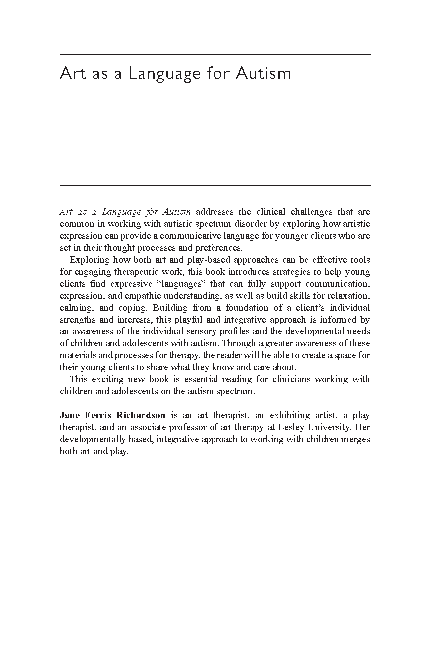 Art as a Language for Autism: Building Effective Therapeutic Relationships with Children and Adolescents by Jane Ferris Richardson
