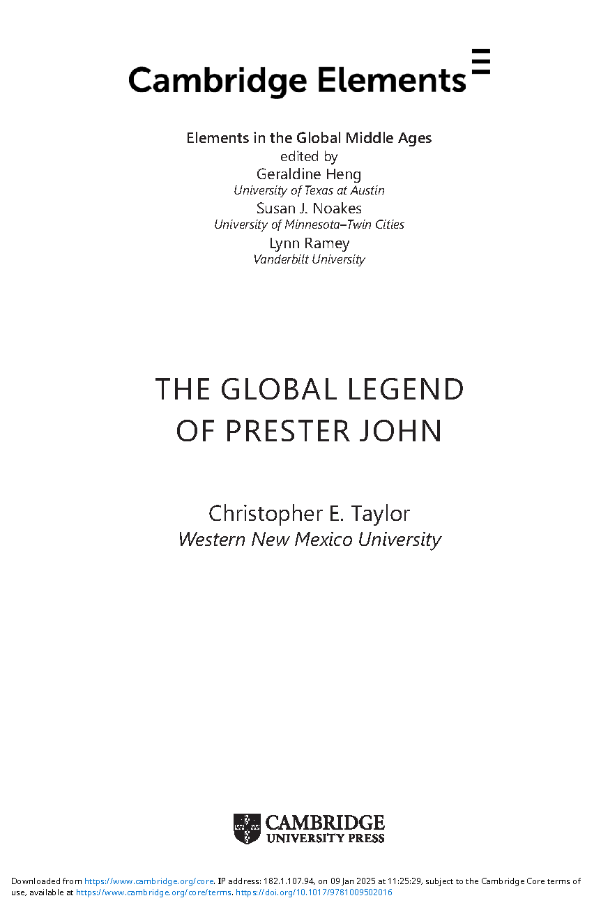 The Global Legend of Prester John: Cambridge Elements - Christopher E. Taylor