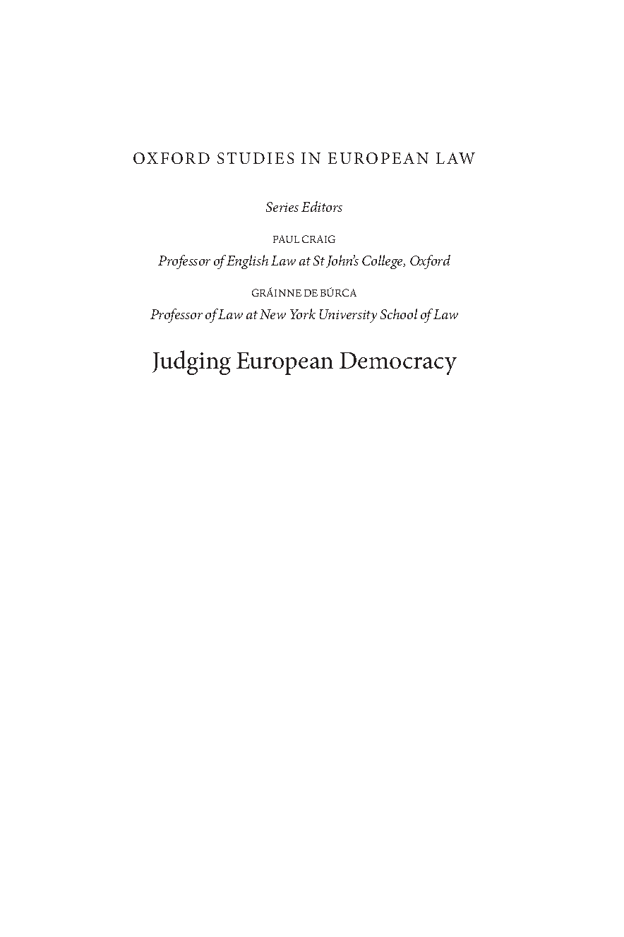 Judging European Democracy: The Role and Legitimacy of National Constitutional Courts in the EU by Nik De Boer - Oxford Studies in European Law