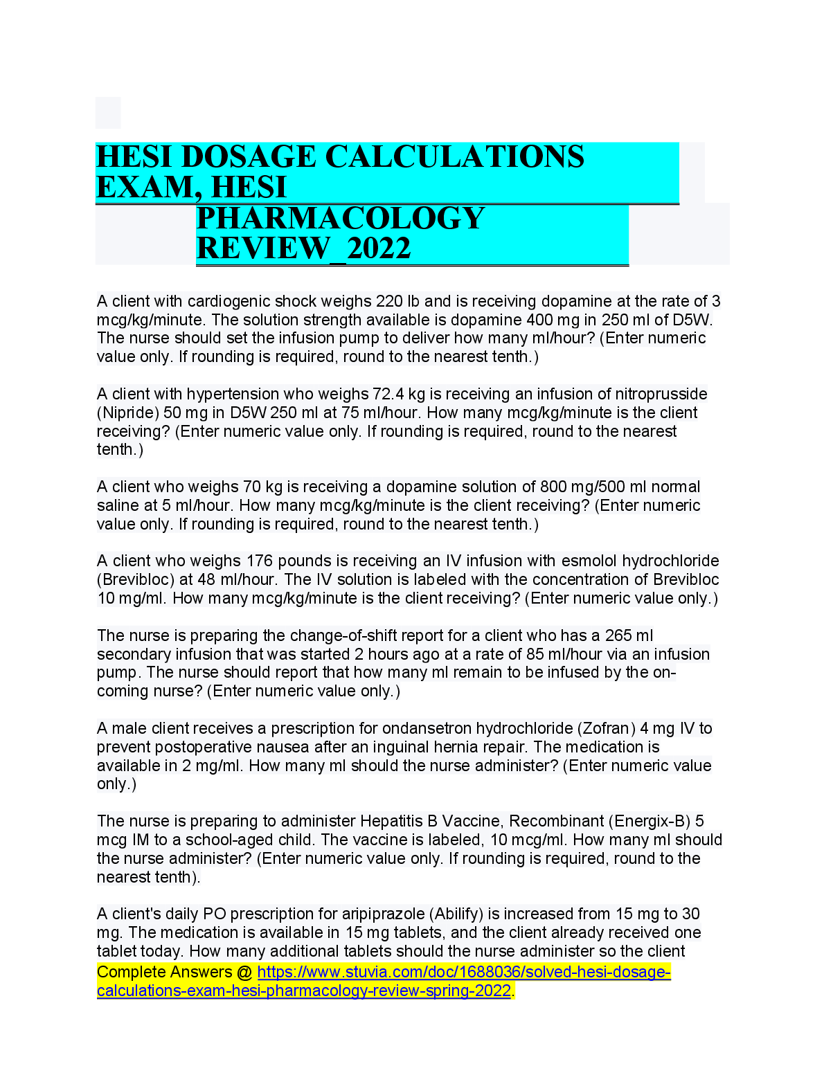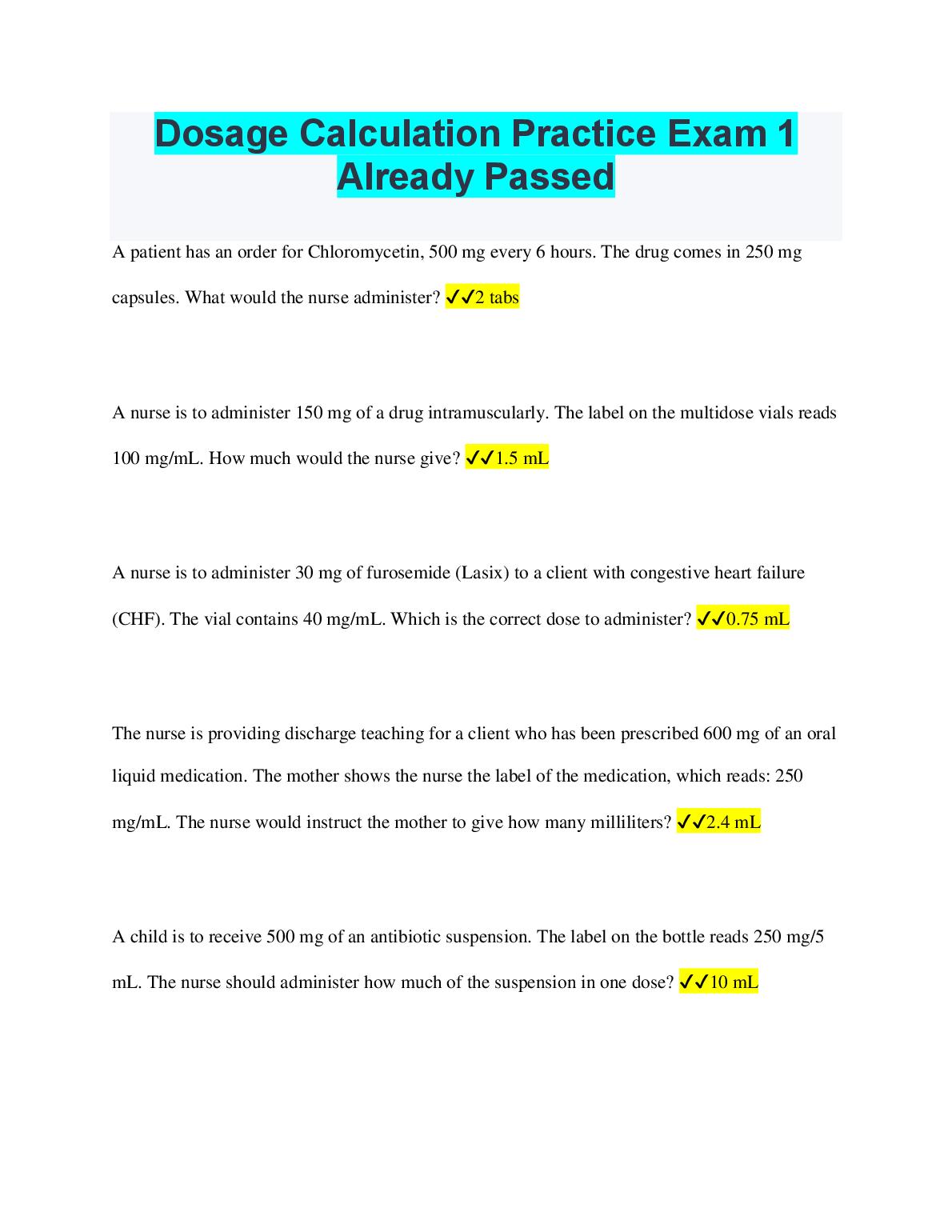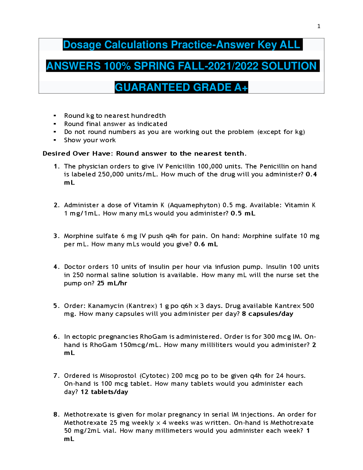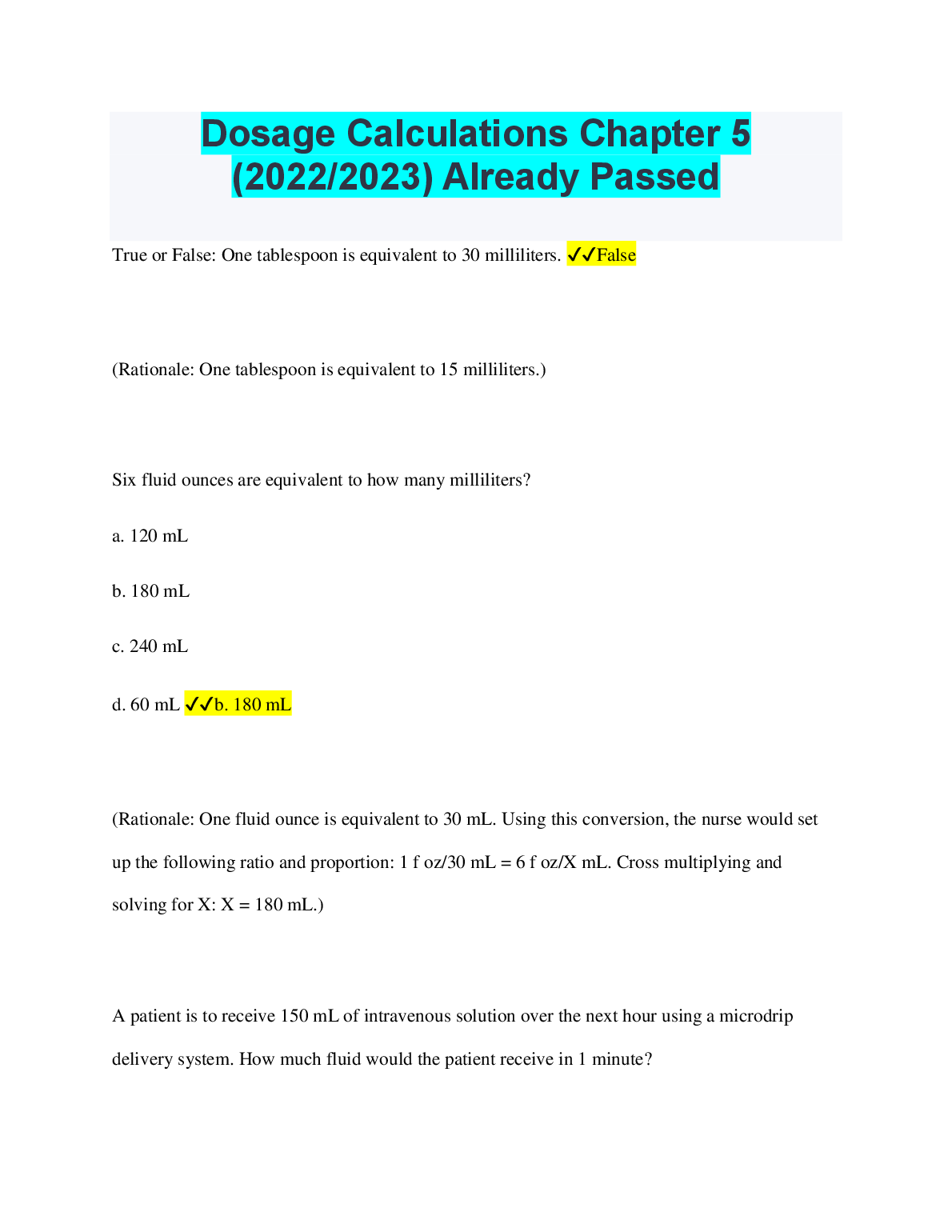 Dosage Calculations, 9th Edition by Gloria Pickar, EdD, Amy Pickar Abernethy (Solution Manual all Chapters Covered). DOWNLOAD INSTANTLY on www.hackedexams.com