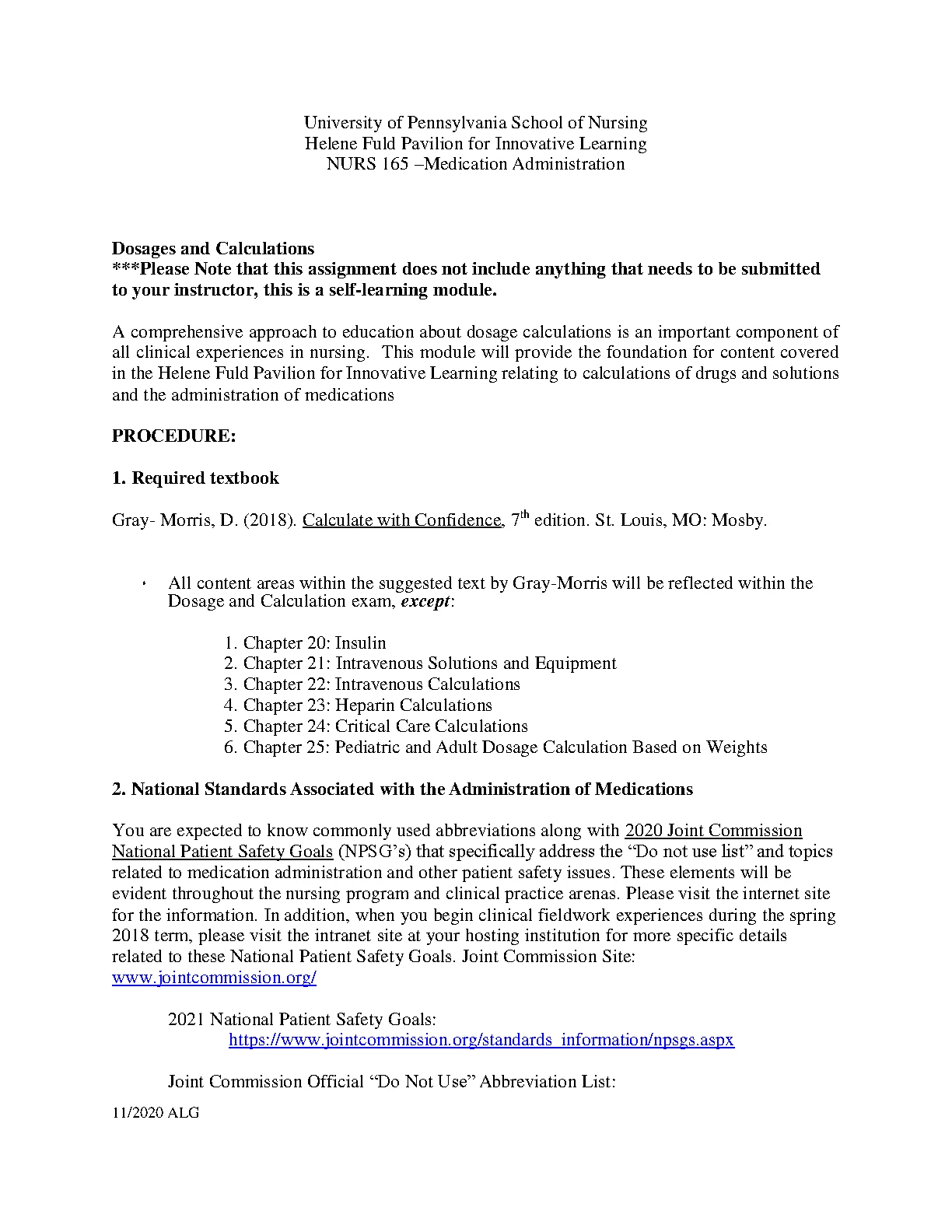 University of Pennsylvania School of Nursing Helene Fuld Pavilion for Innovative Learning NURS 165 –Medication Administration Dosages and Calculations COMPLETE GUIDE FOR 2023/2024