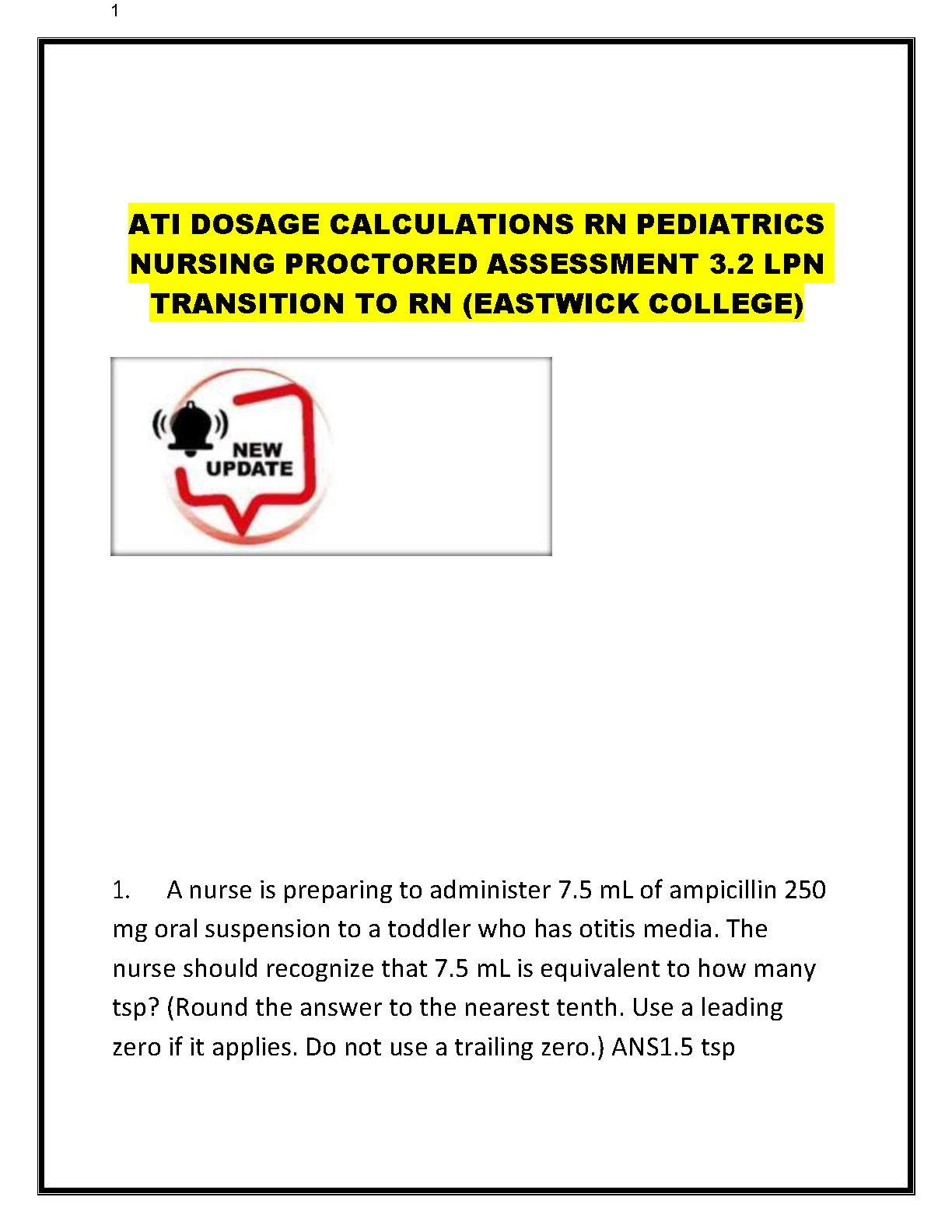 Basic Math Ability To Dosage Calculations RN 2023 BRAND NEW SOLUTION. DOWNLOAD INSTANTLY on www.hackedexams.com