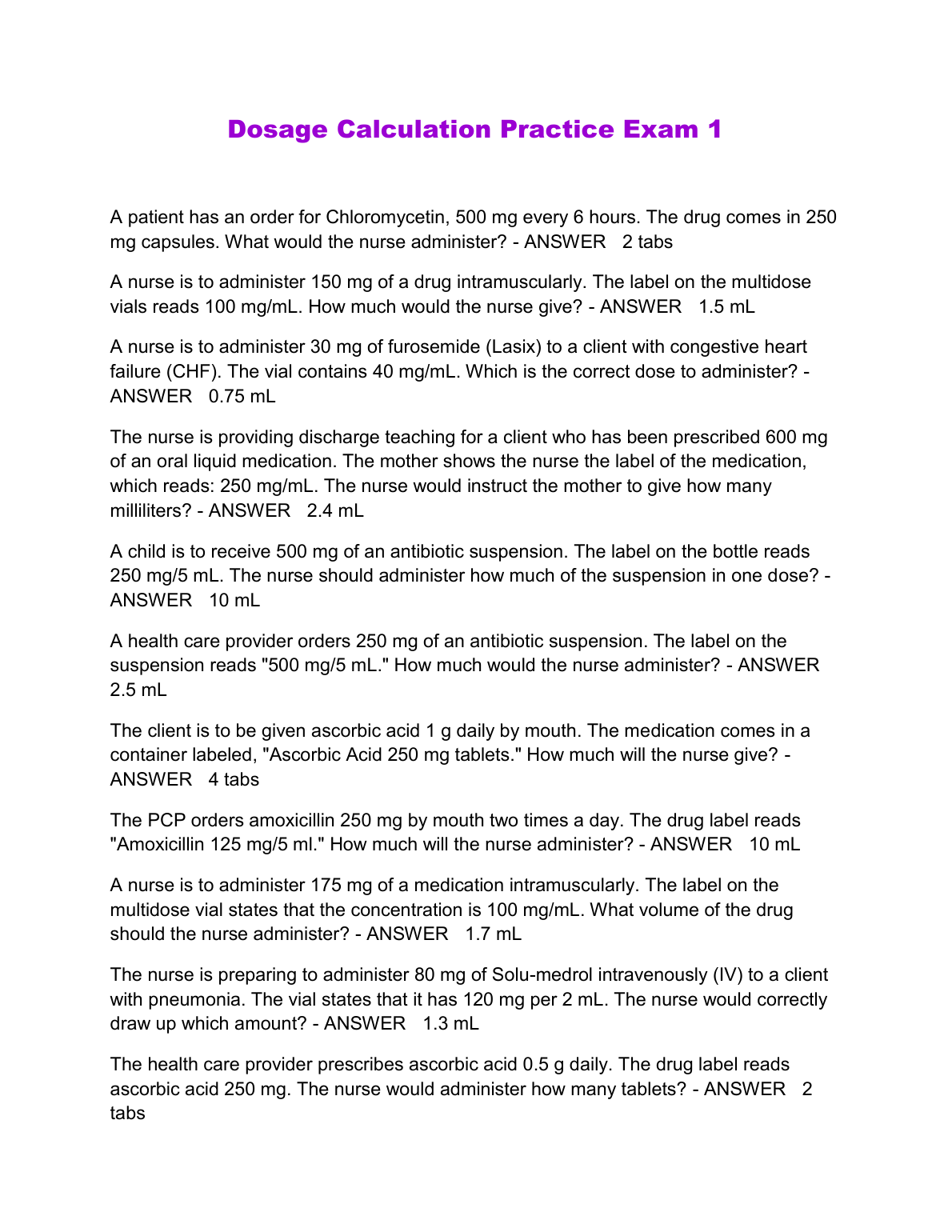 Dosage Calculation Practice Exam 1 2023 GRADED A+. DOWNLOAD INSTANTLY on www.hackedexams.com