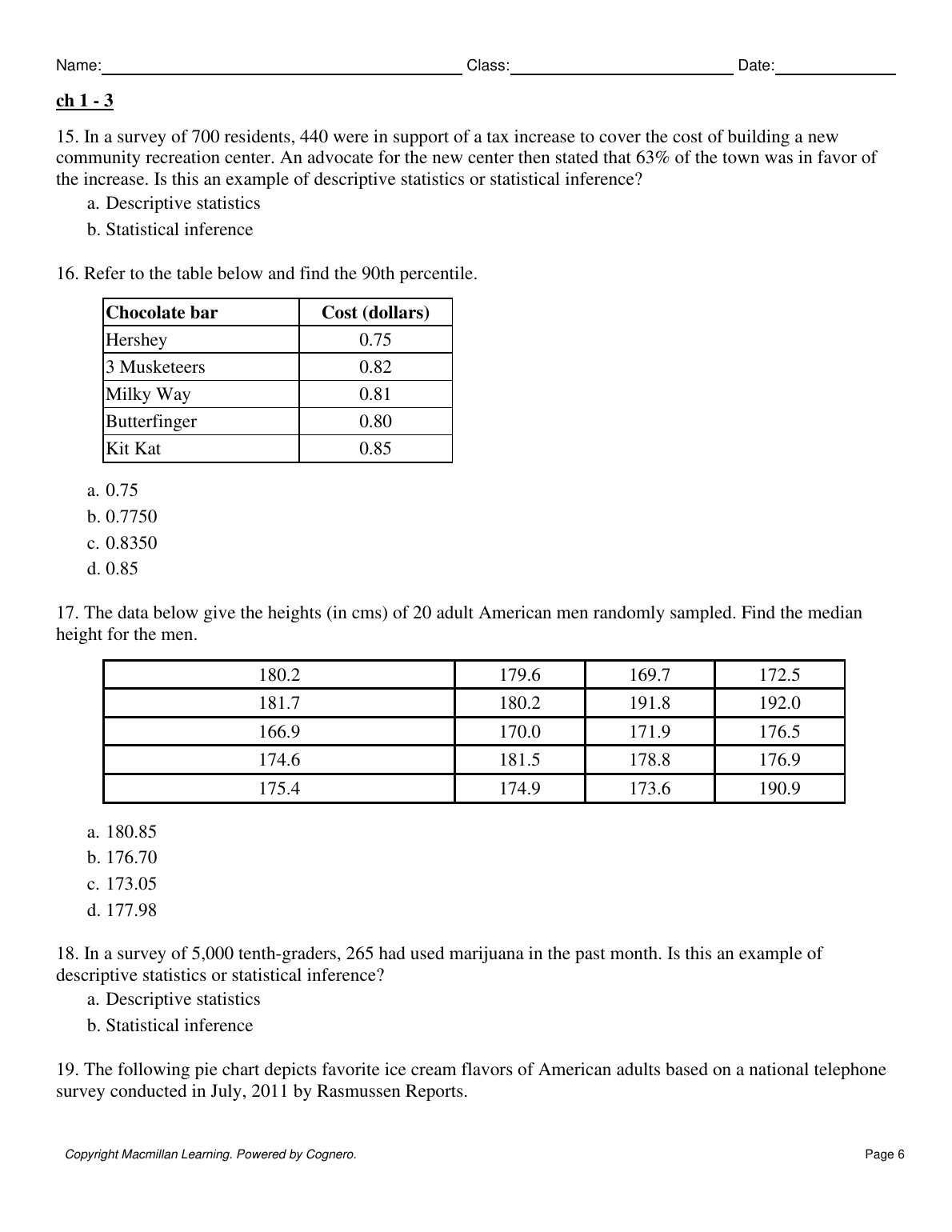 Discovering Statistics, 3RD EDITION BY Daniel Larose (Test Bank, Answer at the end of each Chapter)