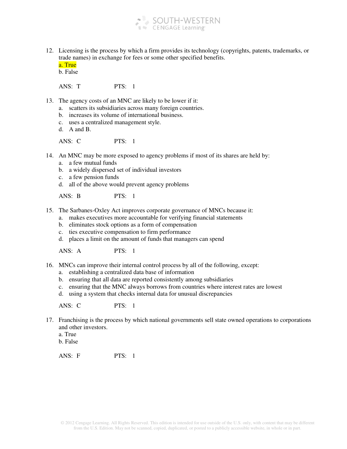 International Corporate Finance 11TH EDITION BY Jeff Madura Test Bank