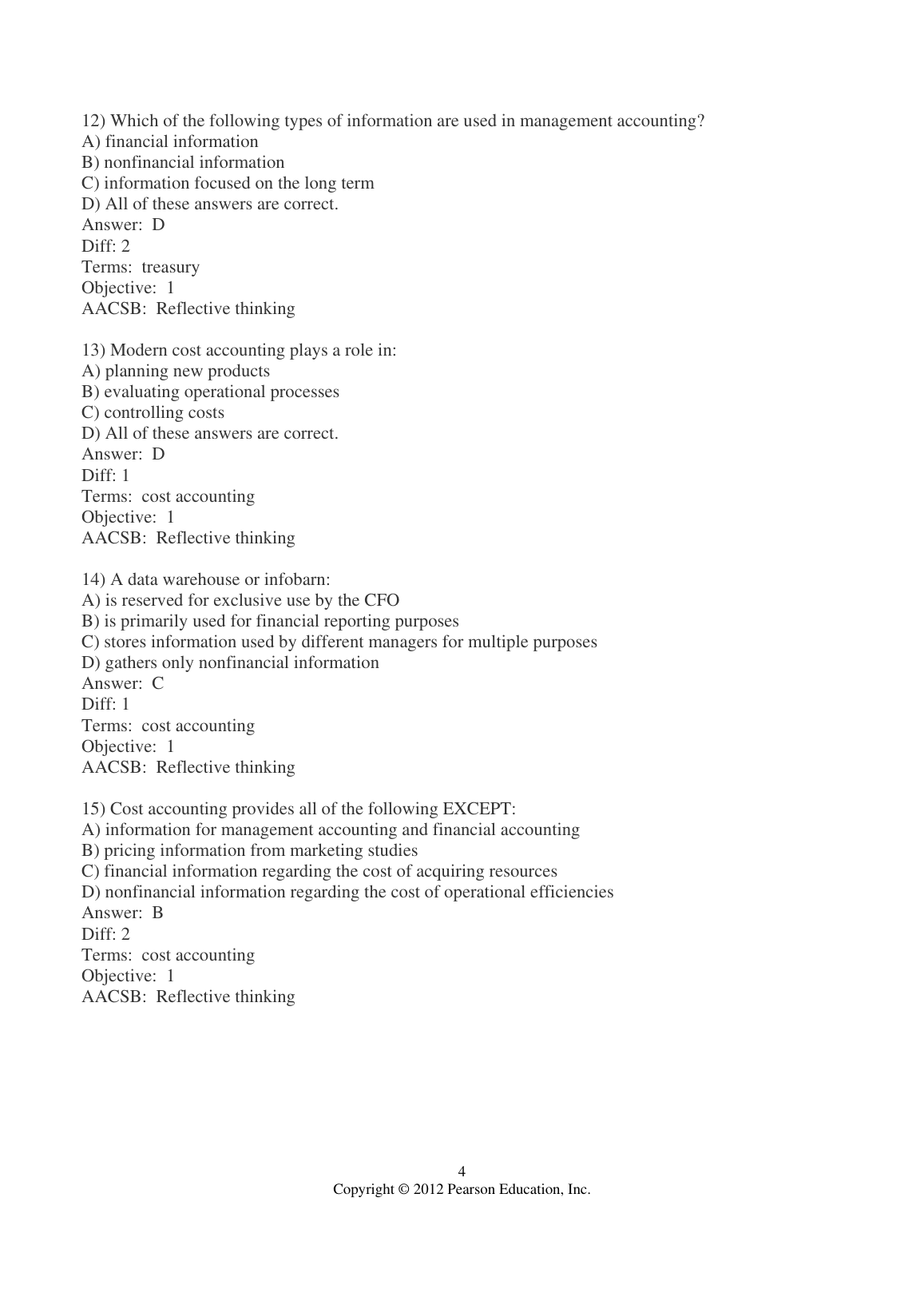 Pearson Education, Inc TEST BANK FOR Cost Accounting, 14TH EDITION (BY Horngren/Datar/Rajan)