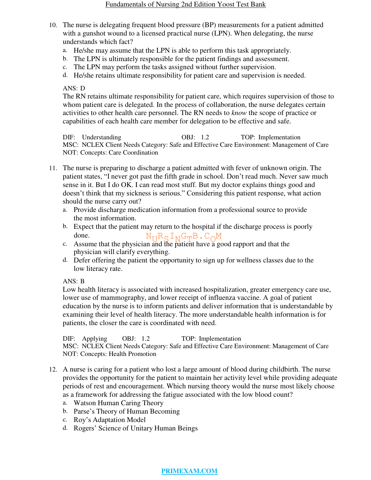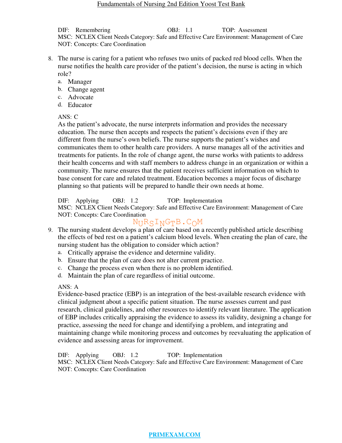 TEST BANK FOR Fundamentals of Nursing: Active Learning for Collaborative BY Practice,Yoost & Crawford: 2nd Edition