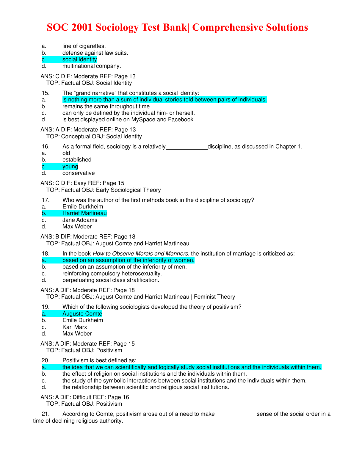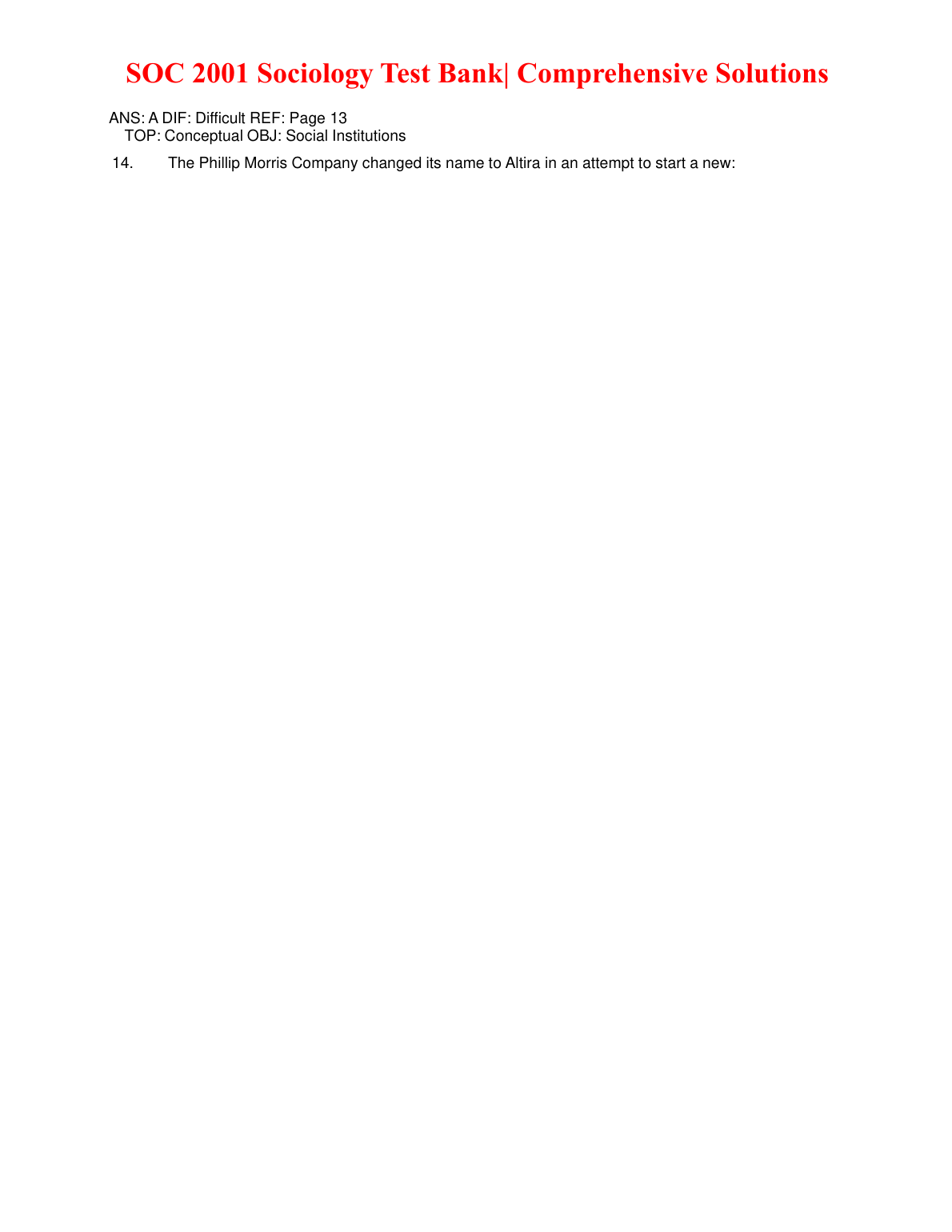 SOC 2001 Sociology Test Bank Comprehensive Solutions for 2023/2024. DOWNLOAD on www.hackedexams.com INSTANTLY.