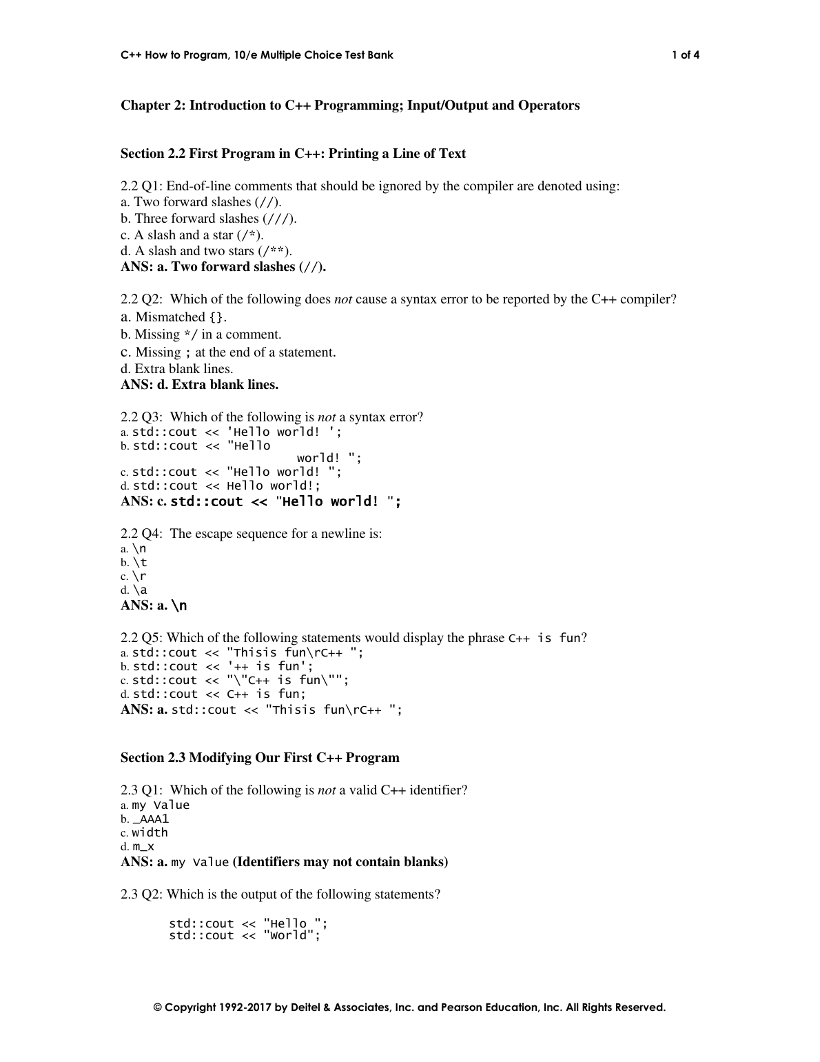 C++ How to Program, 10/e Multiple Choice Test Bank 10TH EDITION BY Paul Deitel Harvey Deitel
