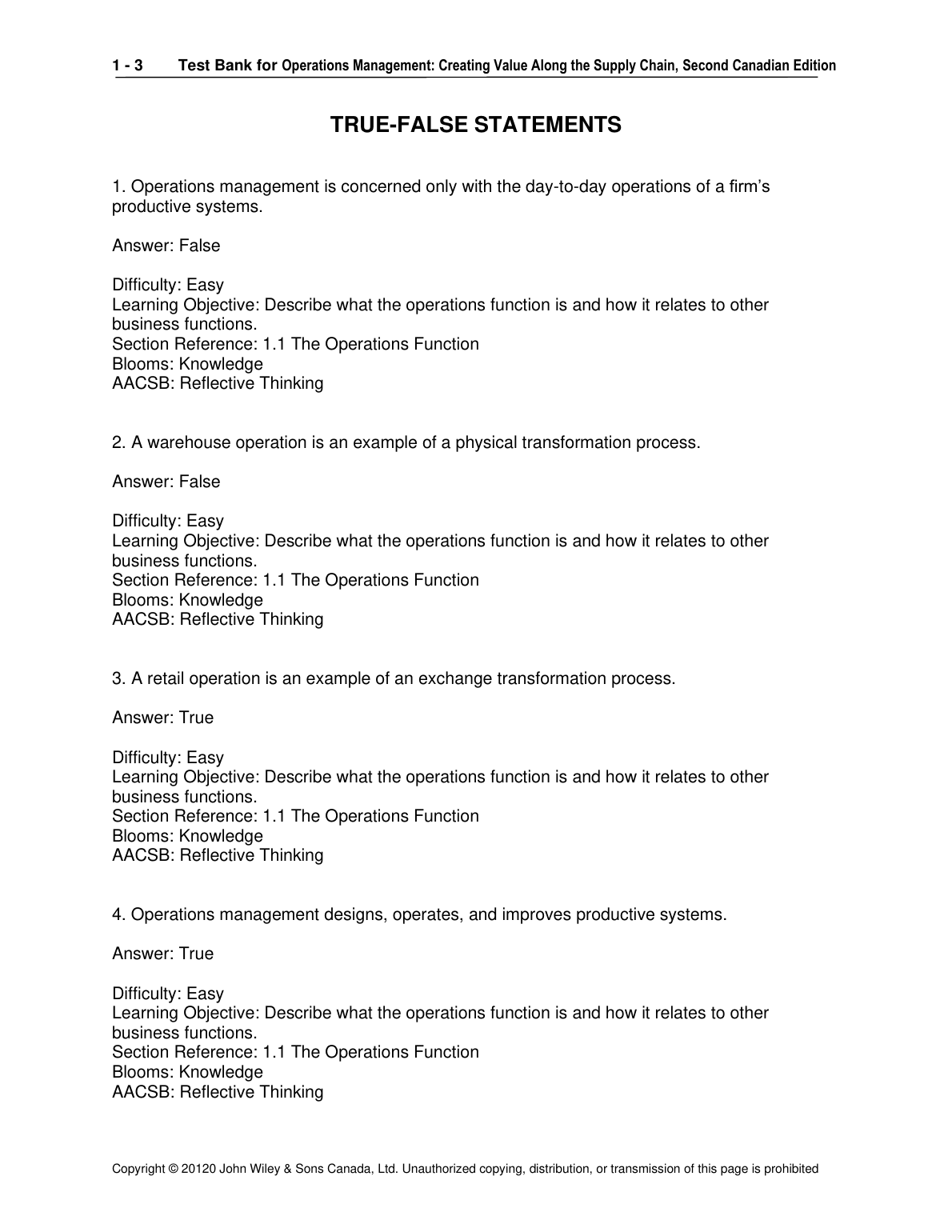 Test Bank for Operations Management Creating Value Along the Supply Chain, 2nd Canadian Edition,BY Roberta Russell, Bernard Taylor, Tiffany Bayley, Ignacio Castillo (All Chapters). DOWNLOAD on www.hackedexams.com INSTANTLY.