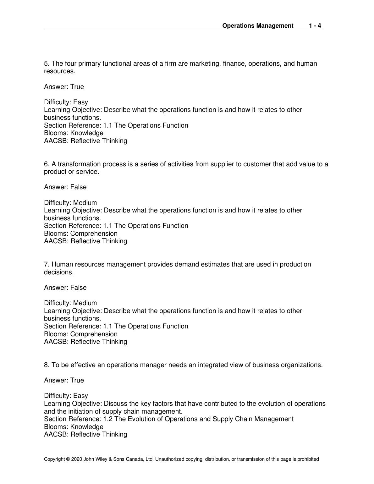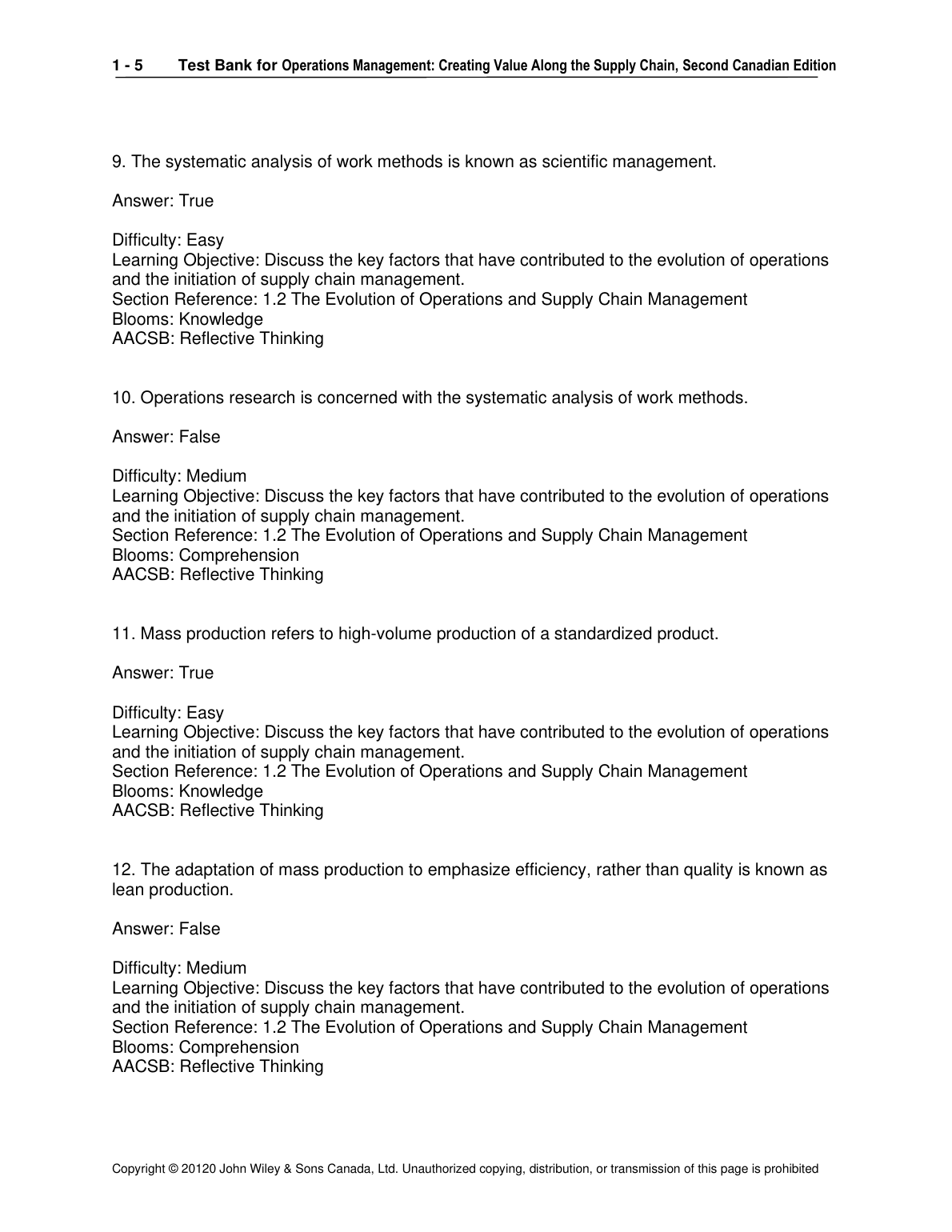 Test Bank for Operations Management Creating Value Along the Supply Chain, 2nd Canadian Edition,BY Roberta Russell, Bernard Taylor, Tiffany Bayley, Ignacio Castillo (All Chapters)