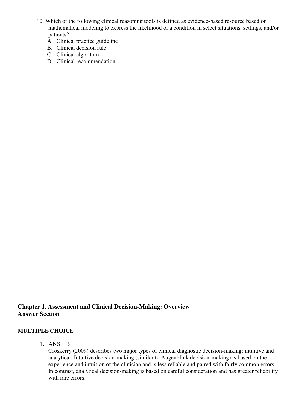 TEST BANK FOR ADNVANCED ASSESSMENT: INTERPRETING FINDINGS AND FOMULATING DIFFERENTIAL DIAGNOSES 4TH EDITION BY MARY, LAURIE