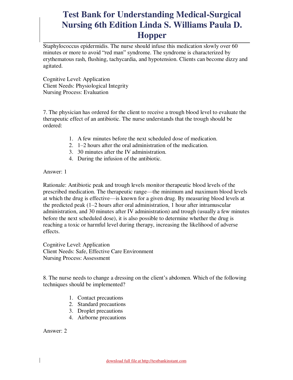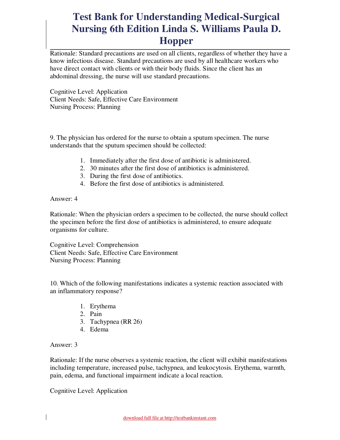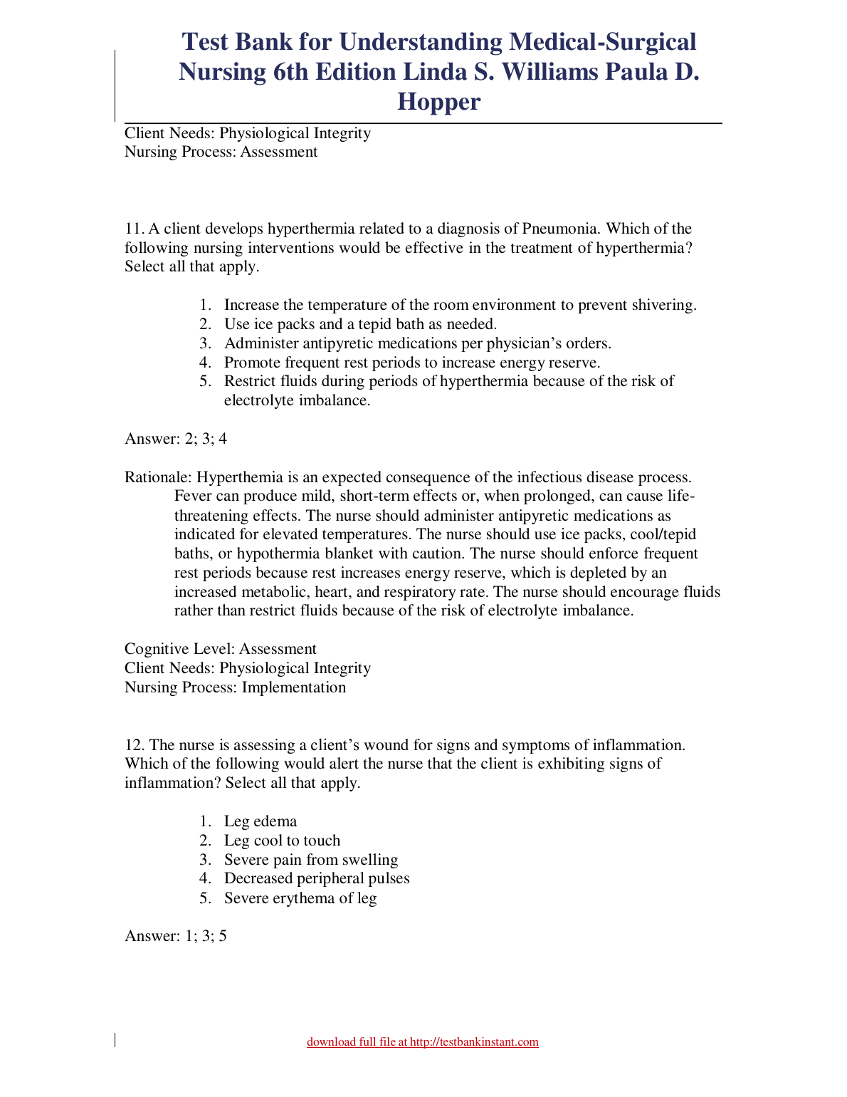 TEST BANK FOR UNDERSTANDING MEDICAL-SURGICAL NURSING 6TH EDITION LINDA S. WILLIAMS PAULA D. HOPPER