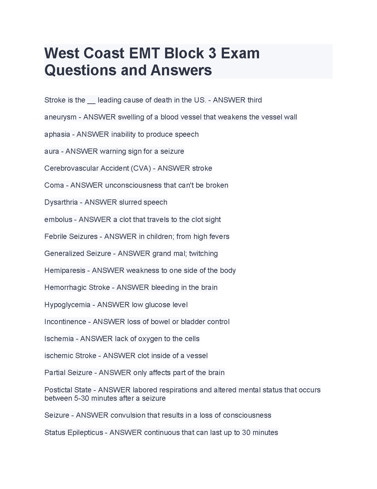 West Coast EMT Block 3 Exam Questions and Answers 2023 Edition. DOWNLOAD on www.hackedexams.com INSTANTLY.