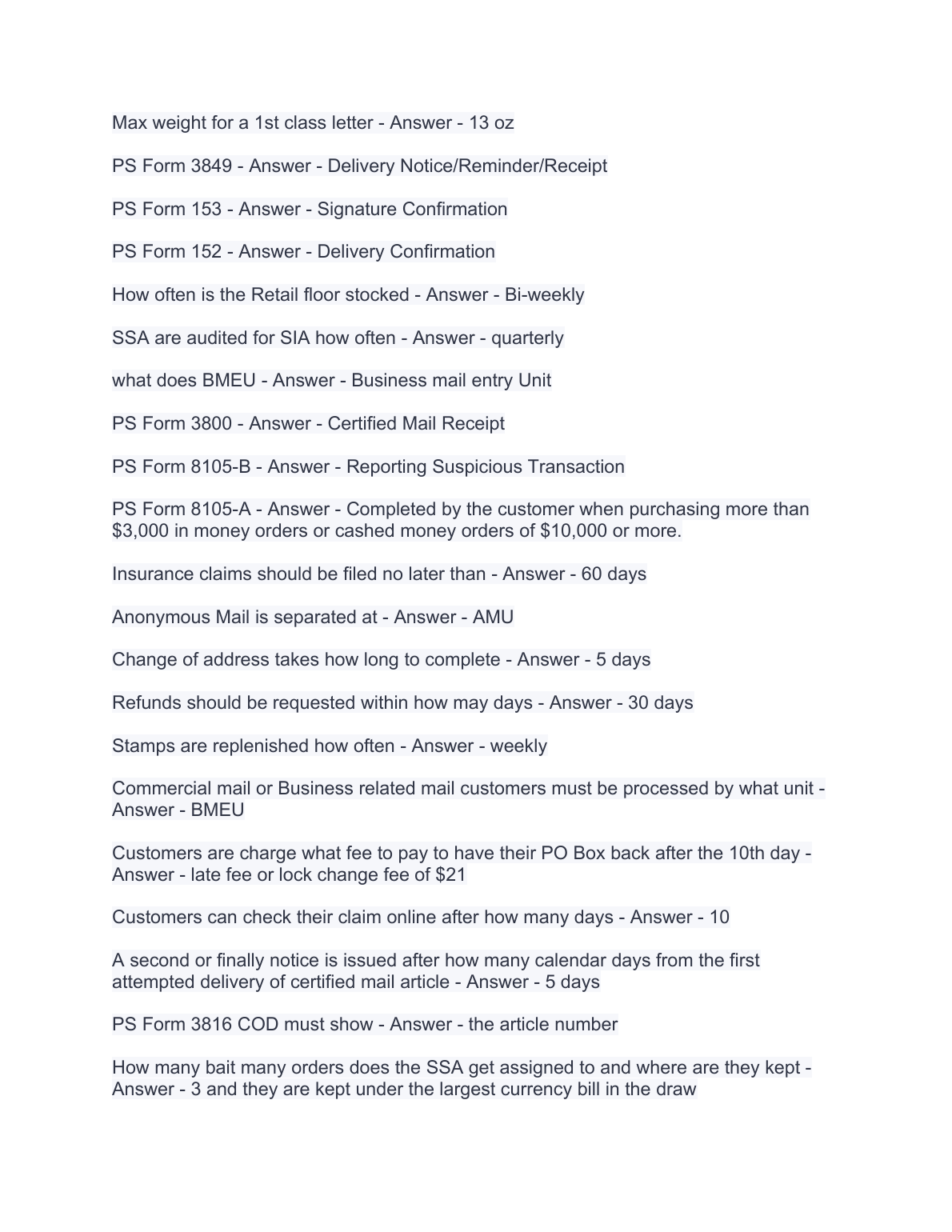 USPS Exam 421 Window Clerk Questions And Answers 2022/2023