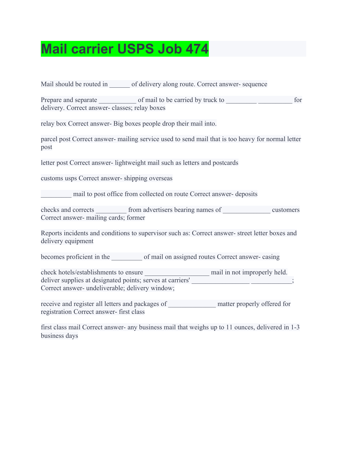 Mail carrier USPS Job 474 COMPLETE STUDY GUIDE 2023. DOWNLOAD on www.hackedexams.com INSTANTLY.
