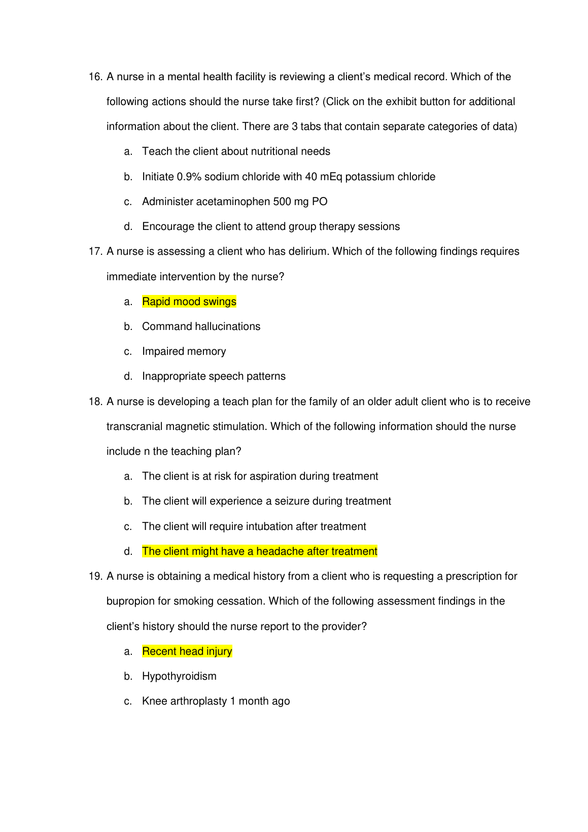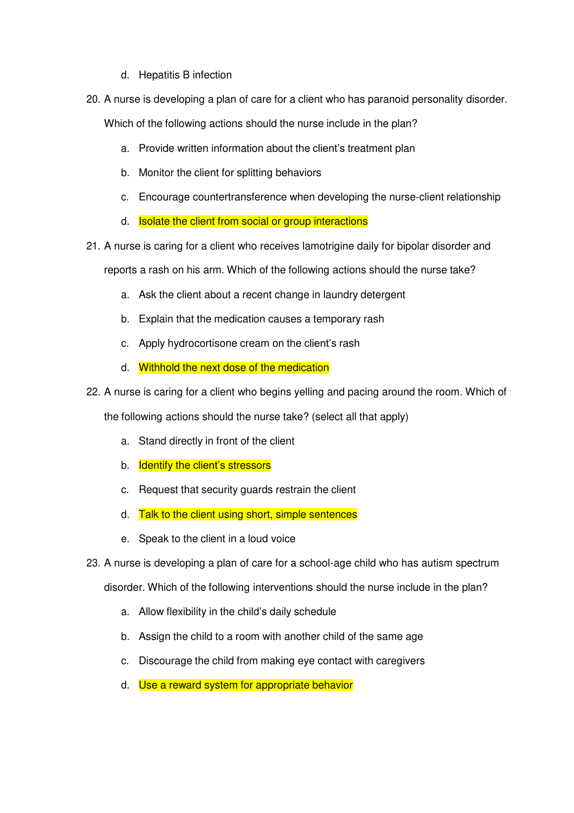 HESI PN Mental Health Exam VERSION 15 NEW STUDY GUIDE 2023