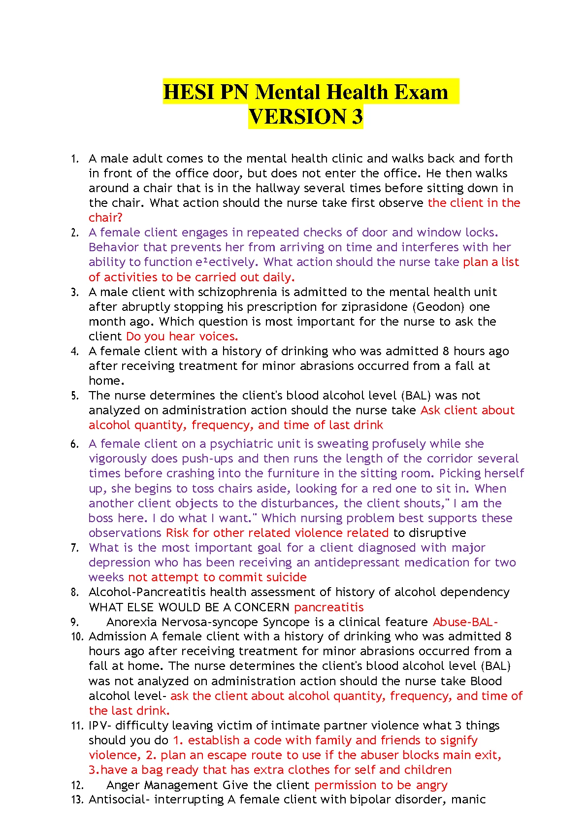 HESI PN Mental Health Exam VERSION 3 BEST SOLUTION FOR SUCCESS 2023