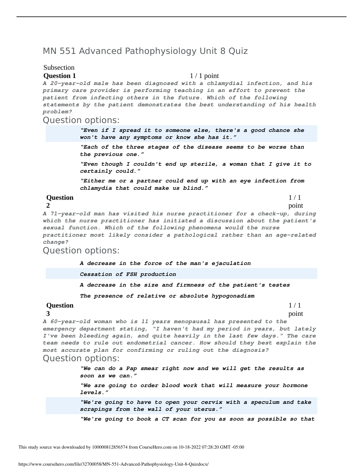 MN 551 Advanced Pathophysiology Unit 8 Quiz RECENT UPDATE. DOWNLOAD on www.hackedexams.com INSTANTLY.