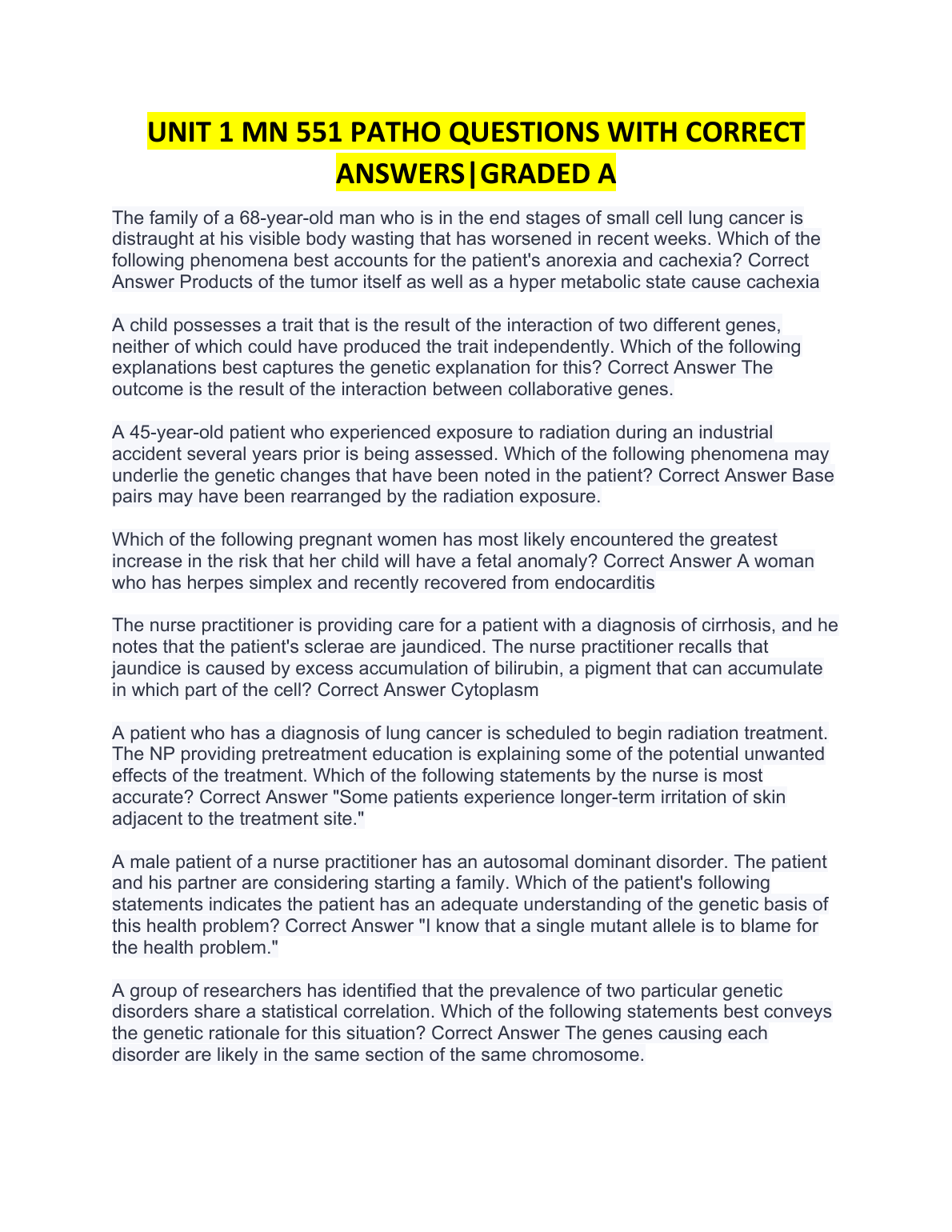 UNIT 1 MN 551 PATHO QUESTIONS WITH CORRECT ANSWERS GRADED A+. DOWNLOAD on www.hackedexams.com INSTANTLY.