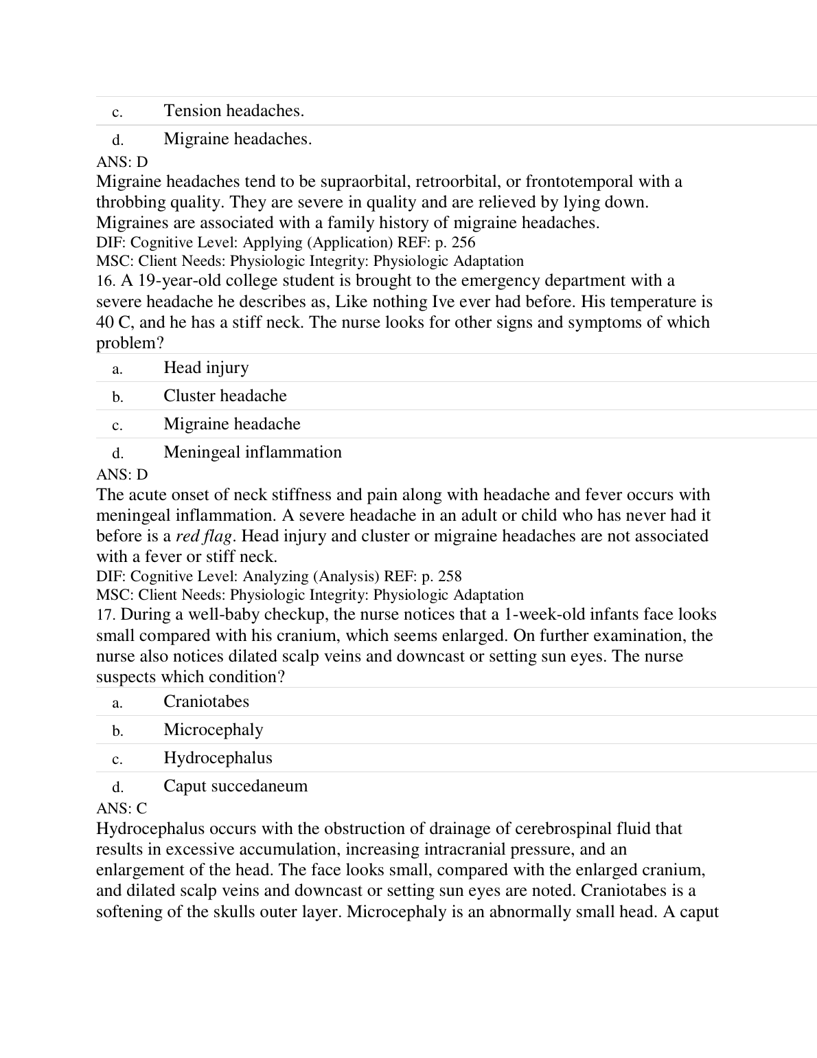 TEST BANK QUESTIONS - Jarvis Physical Examination & Health Assessment, 7th Edition