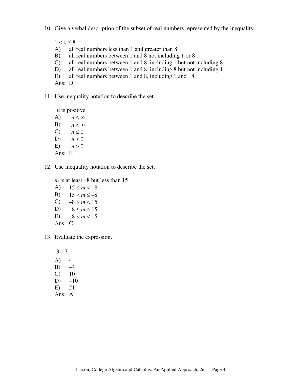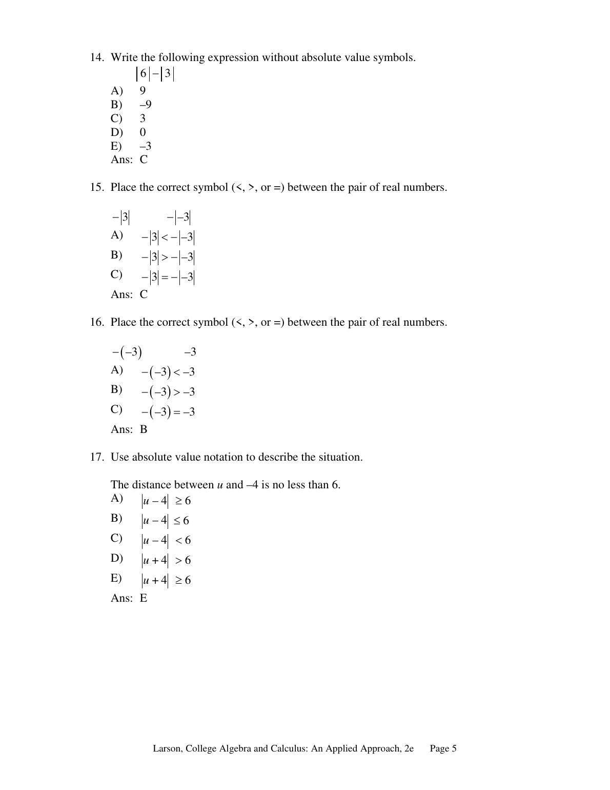 College Algebra and Calculus an Applied Approach 2 ND EDITION BY Ron Larson Anne Hodgkins- TEST BANK