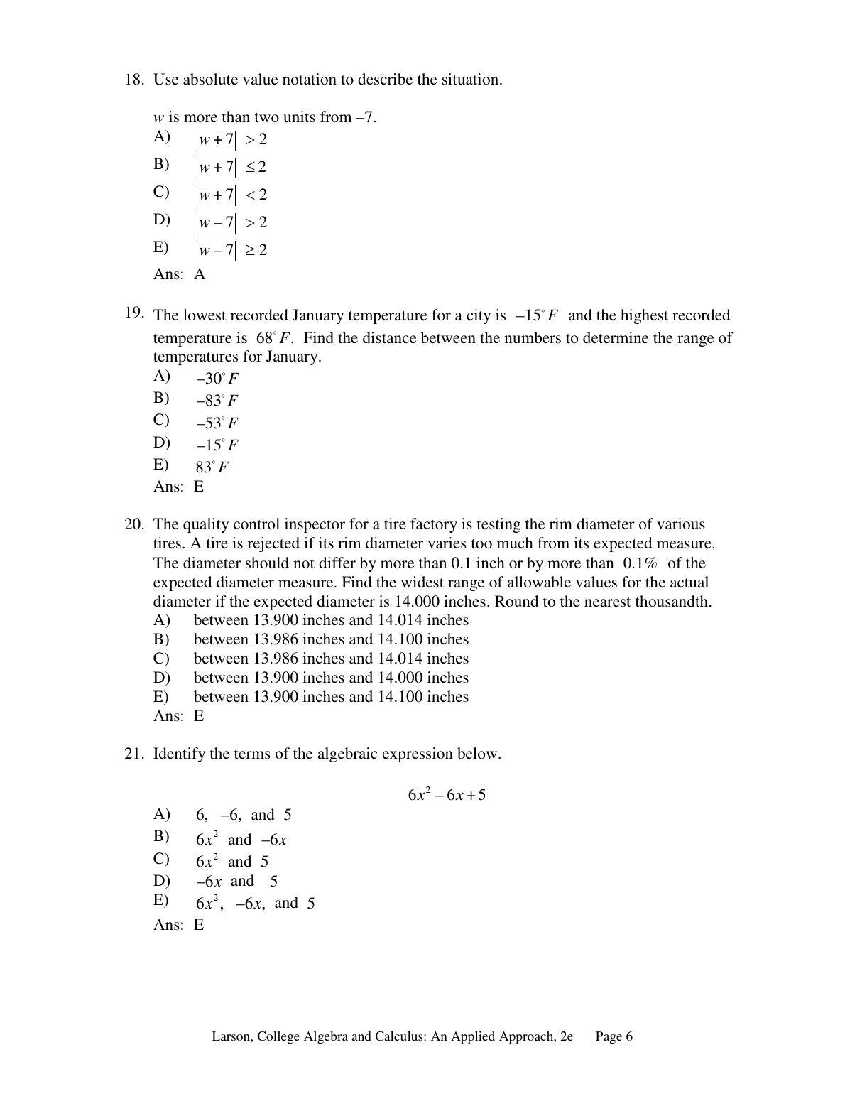 College Algebra and Calculus an Applied Approach 2 ND EDITION BY Ron Larson Anne Hodgkins- TEST BANK. DOWNLOAD on www.hackedexams.com INSTANTLY.