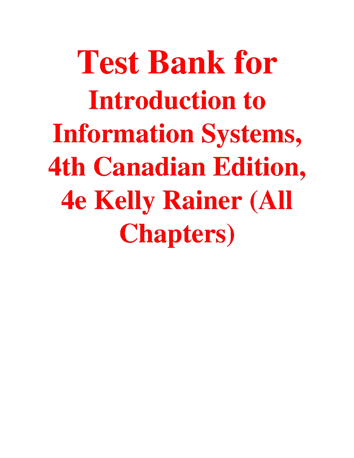 Test Bank for Introduction to Information Systems, 4th Canadian Edition, 4TH EDITION BY Kelly Rainer (All Chapters). DOWNLOAD on www.hackedexams.com INSTANTLY.