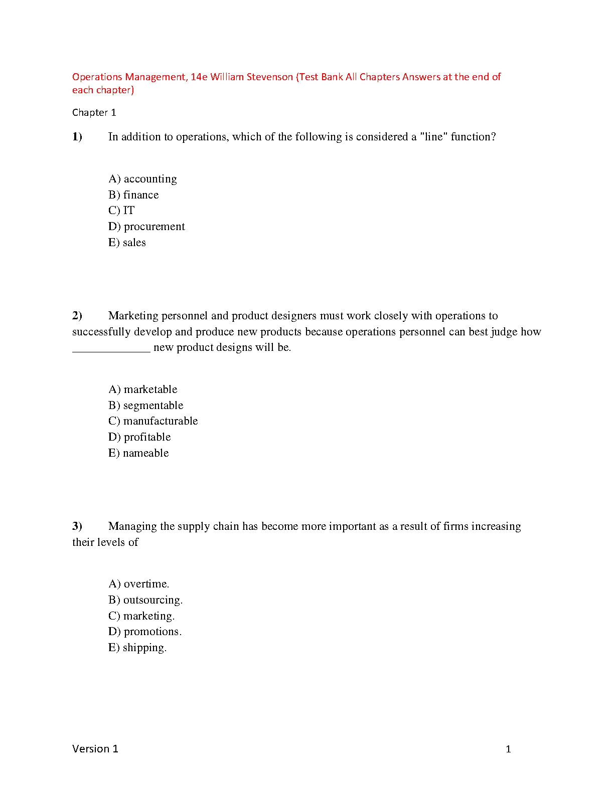 TEST BANK FOR Operations Management, 14TH EDITION BY William Stevenson (All Chapters Answers at the end of each chapter). DOWNLOAD on www.hackedexams.com INSTANTLY.