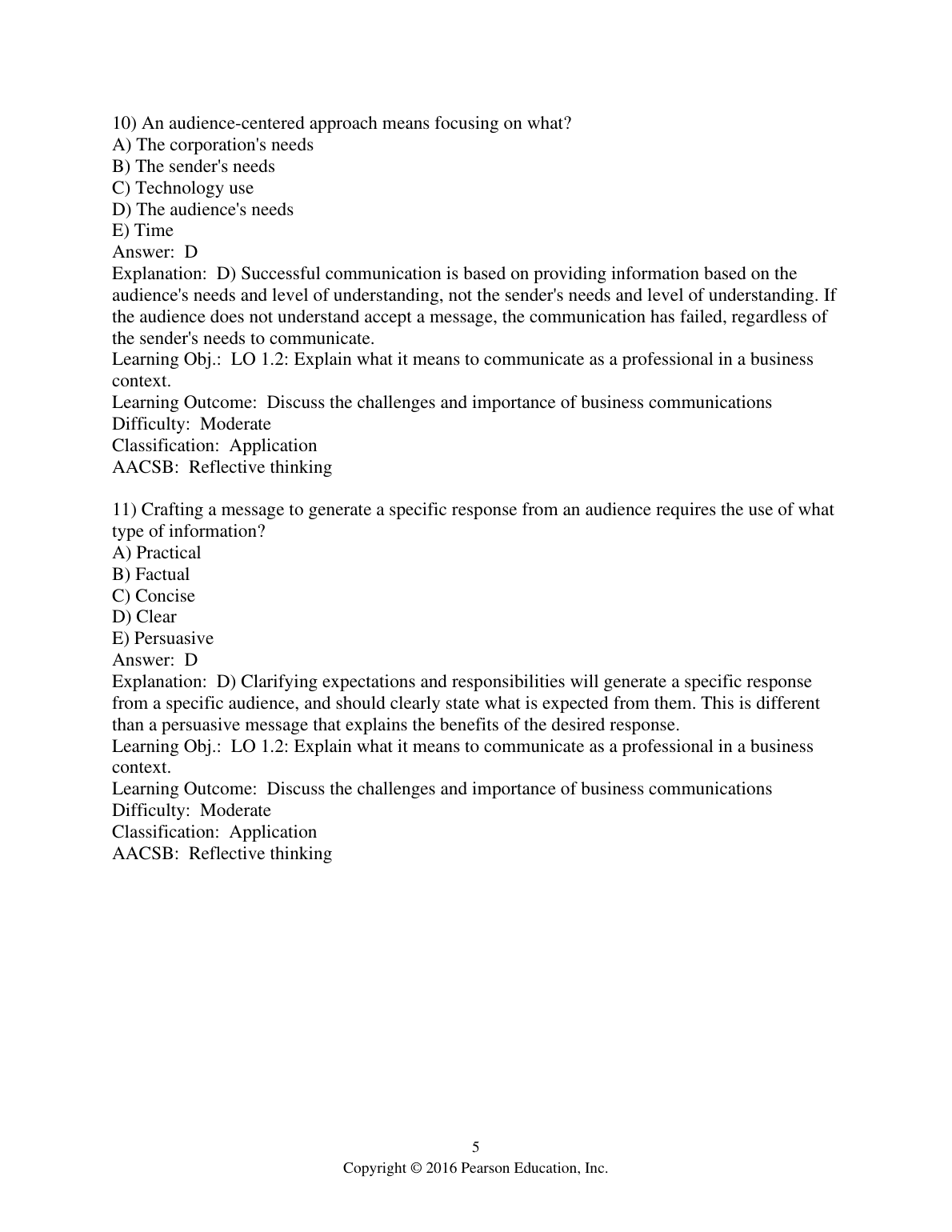 Business Communication Essentials, 7TH EDITION (BY Bovee/Thill) TEST BANK