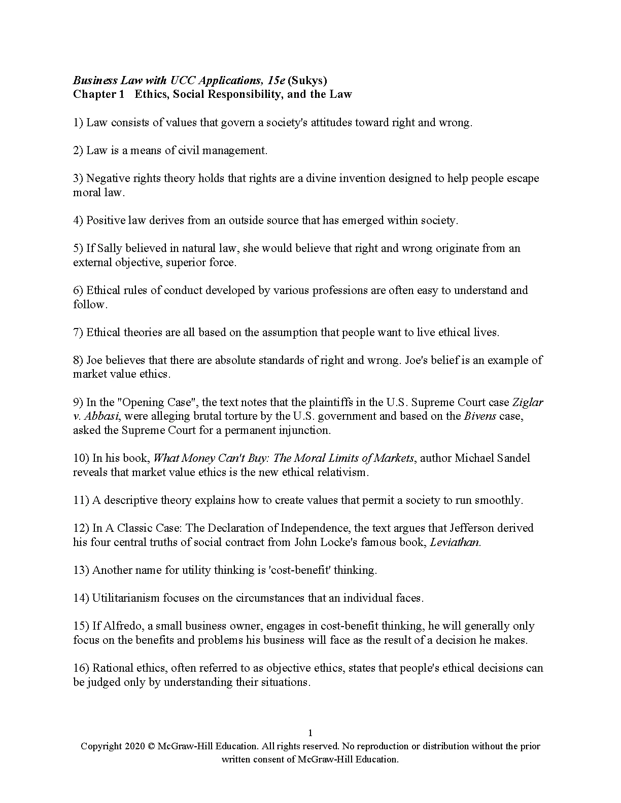 TEST BANK FOR Business Law with UCC Applications, 15TH EDITION (BY Sukys)