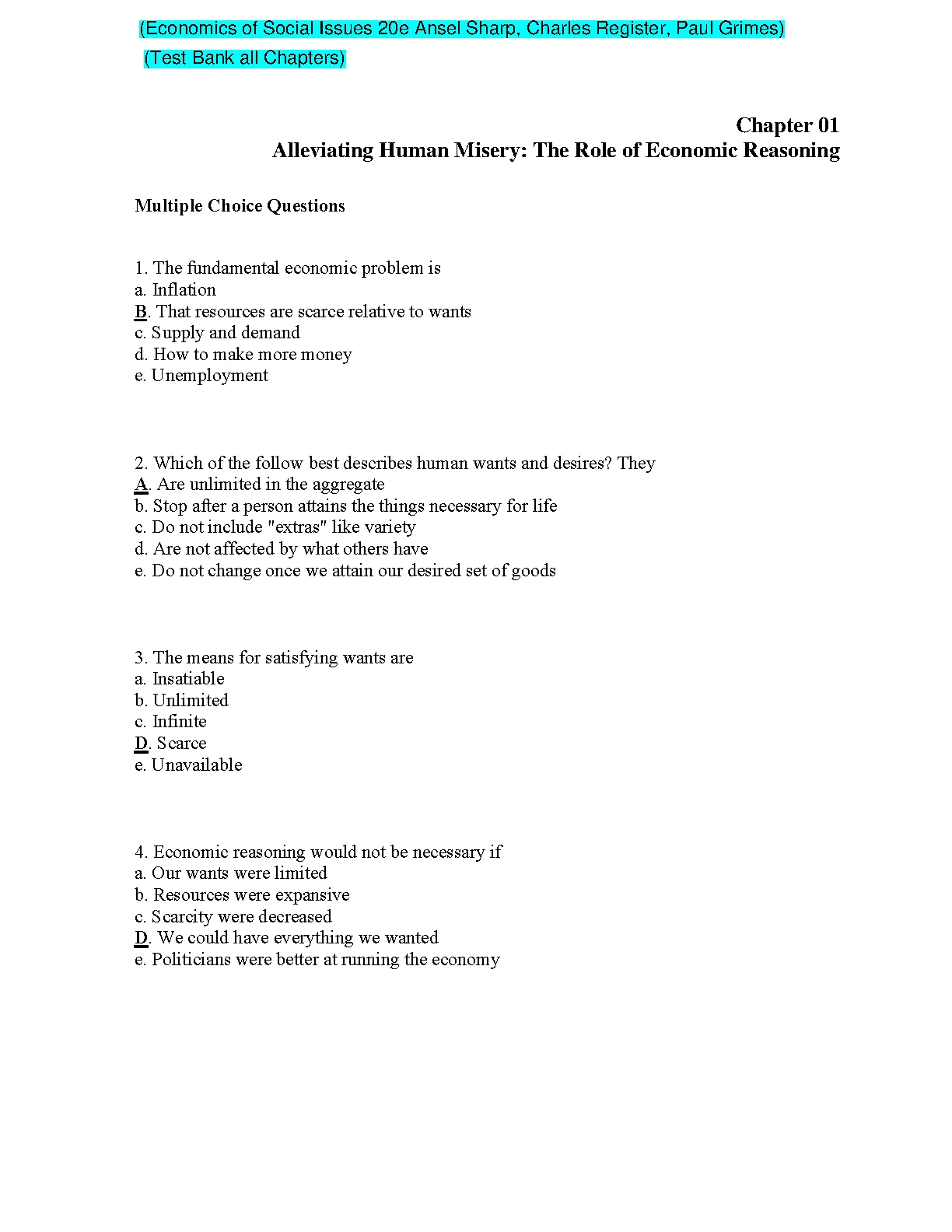 TEST BANK: Economics of Social Issues 20TH EDITION BY Ansel Sharp, Charles Register, Paul Grimes. DOWNLOAD on www.hackedexams.com INSTANTLY.