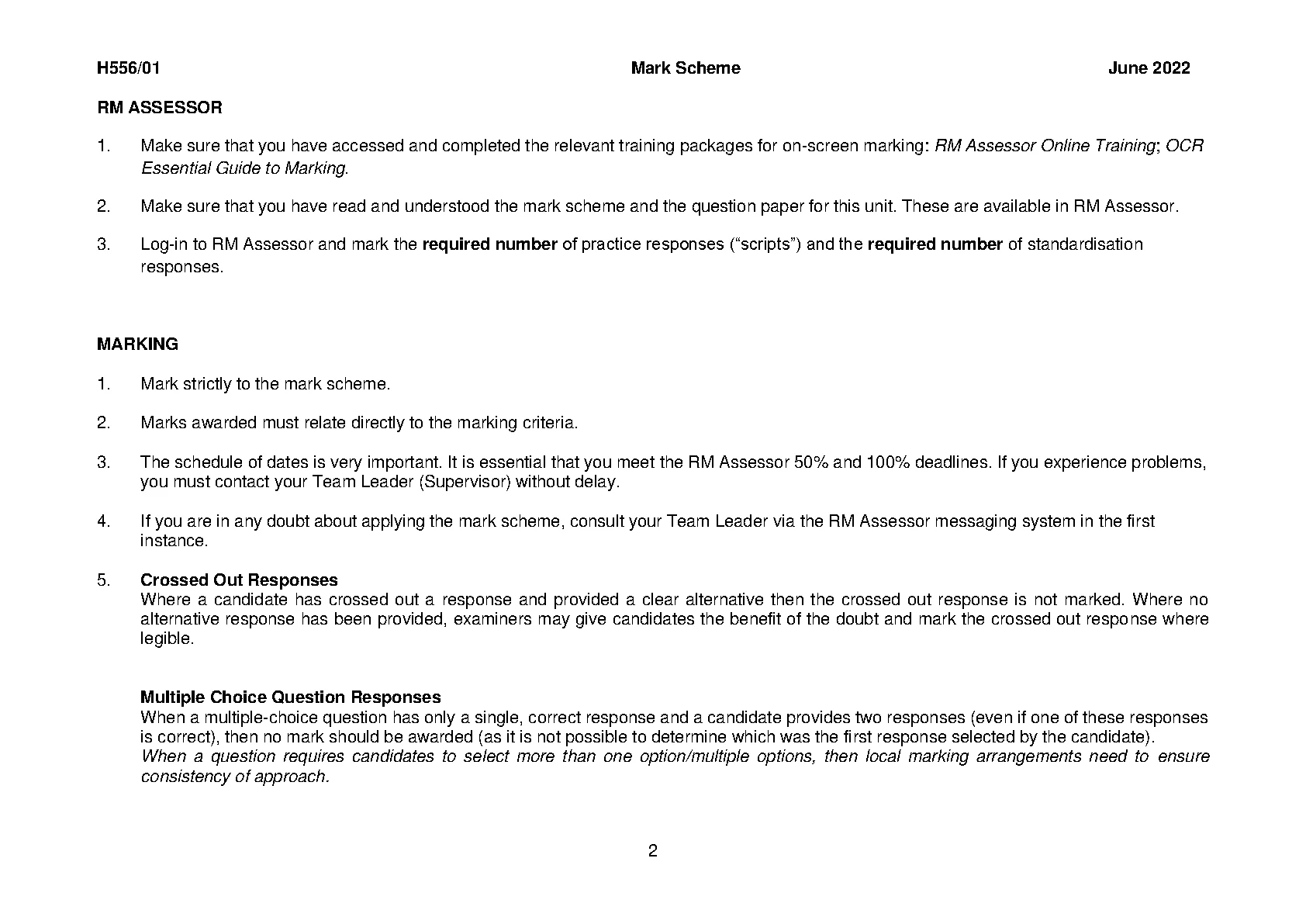 OCR A LEVEL PHYSICS A PAPER 1 JUNE 2022 2022 MARK SCHEME (H556/01: Modelling physics)