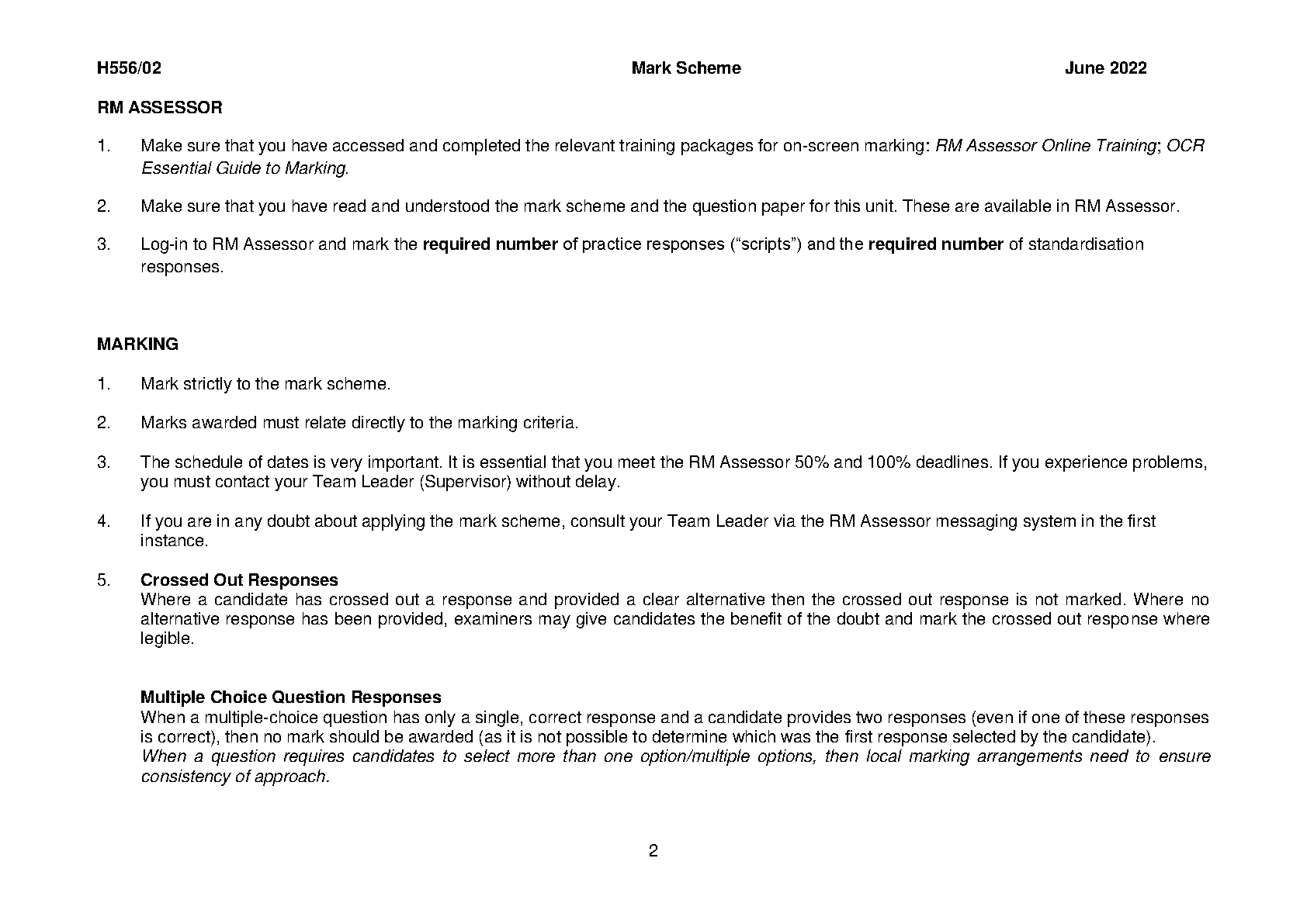 OCR A LEVEL PHYSICS A PAPER 2 JUNE 2022 2022 MARK SCHEME (H556/02: Exploring physics)