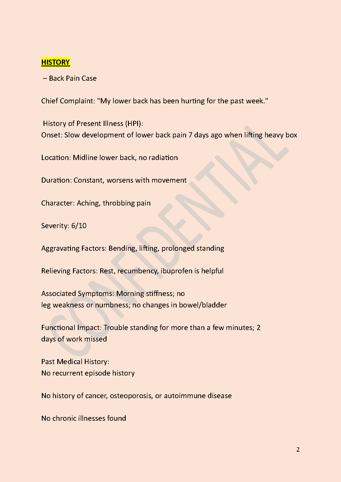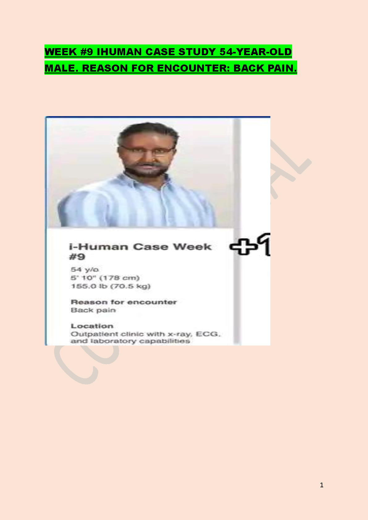 iHuman Case Study Week 9: 54-Year-Old Male with Back Pain - 2024/2025 Edition