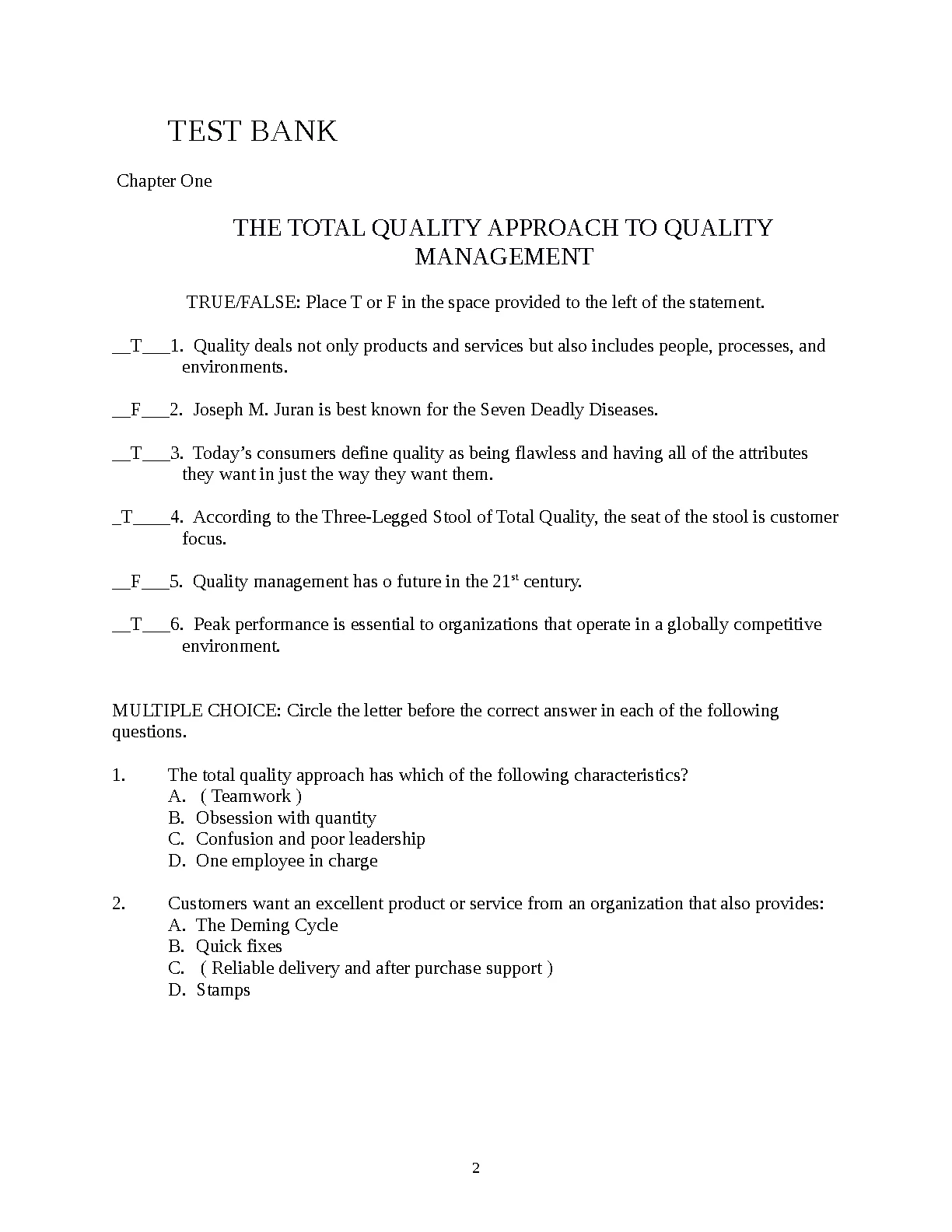 Test Bank & Instructor’s Solutions Manual to accompany QUALITY MANAGEMENT for Organizational Excellence Seventh Edition David L. Goetsch Stanley B. Davis. DOWNLOAD on www.hackedexams.com INSTANTLY.