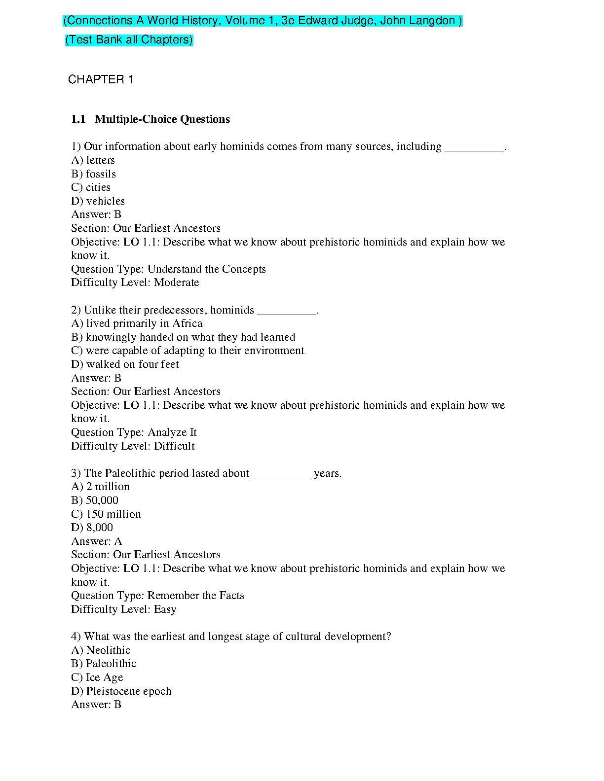 TEST BANK FOR Connections A World History, Volume 1, 3RD EDITION BY Edward Judge, John Langdon . DOWNLOAD on www.hackedexams.com INSTANTLY.