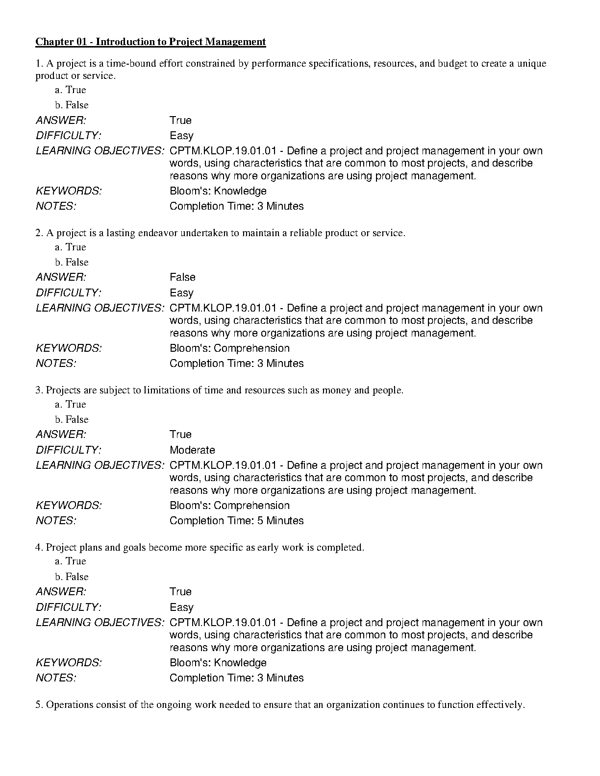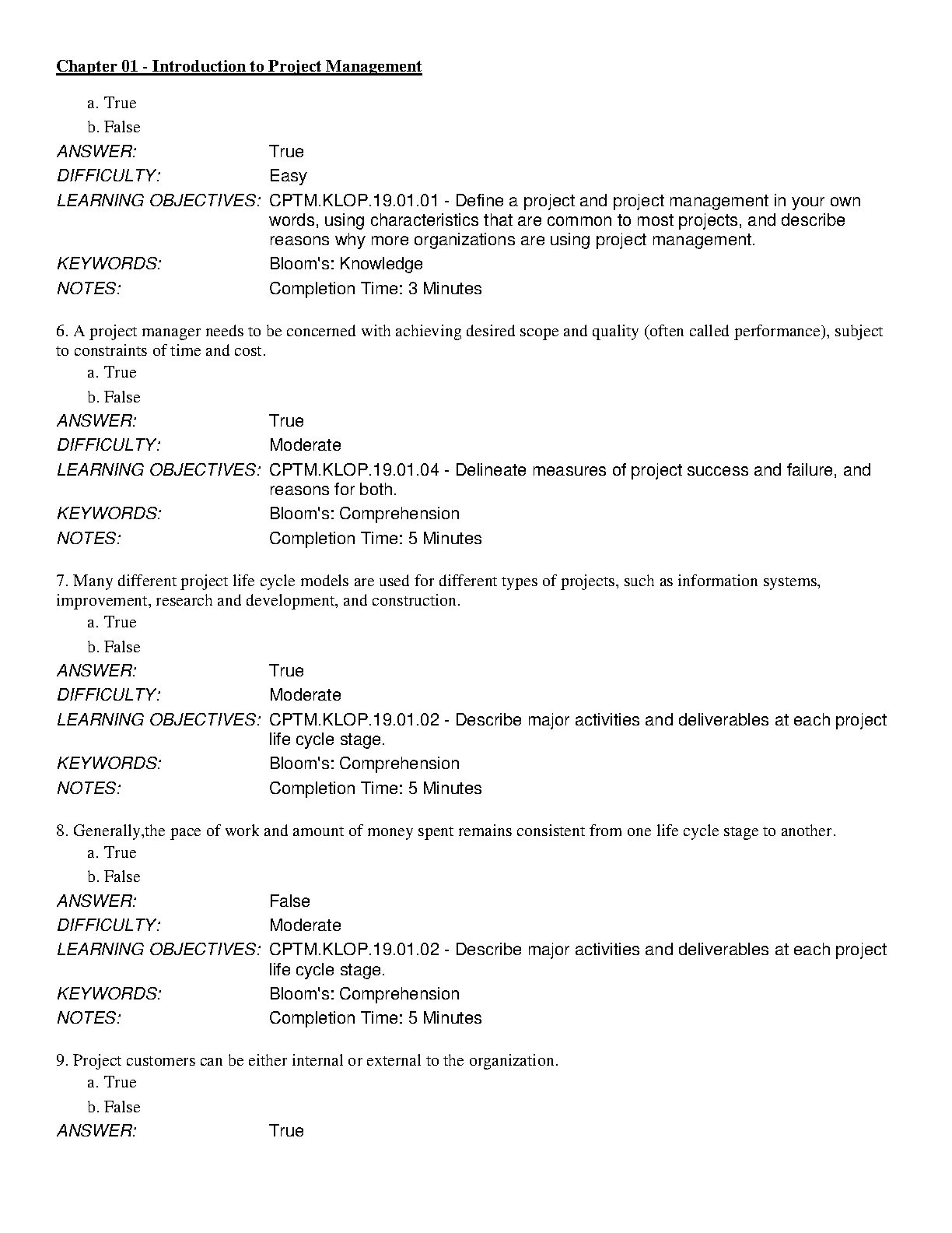 Contemporary Project Management 4TH EDITION BY Timothy Kloppenborg Vittal Anantatmula Kathryn Wells TEST BANK