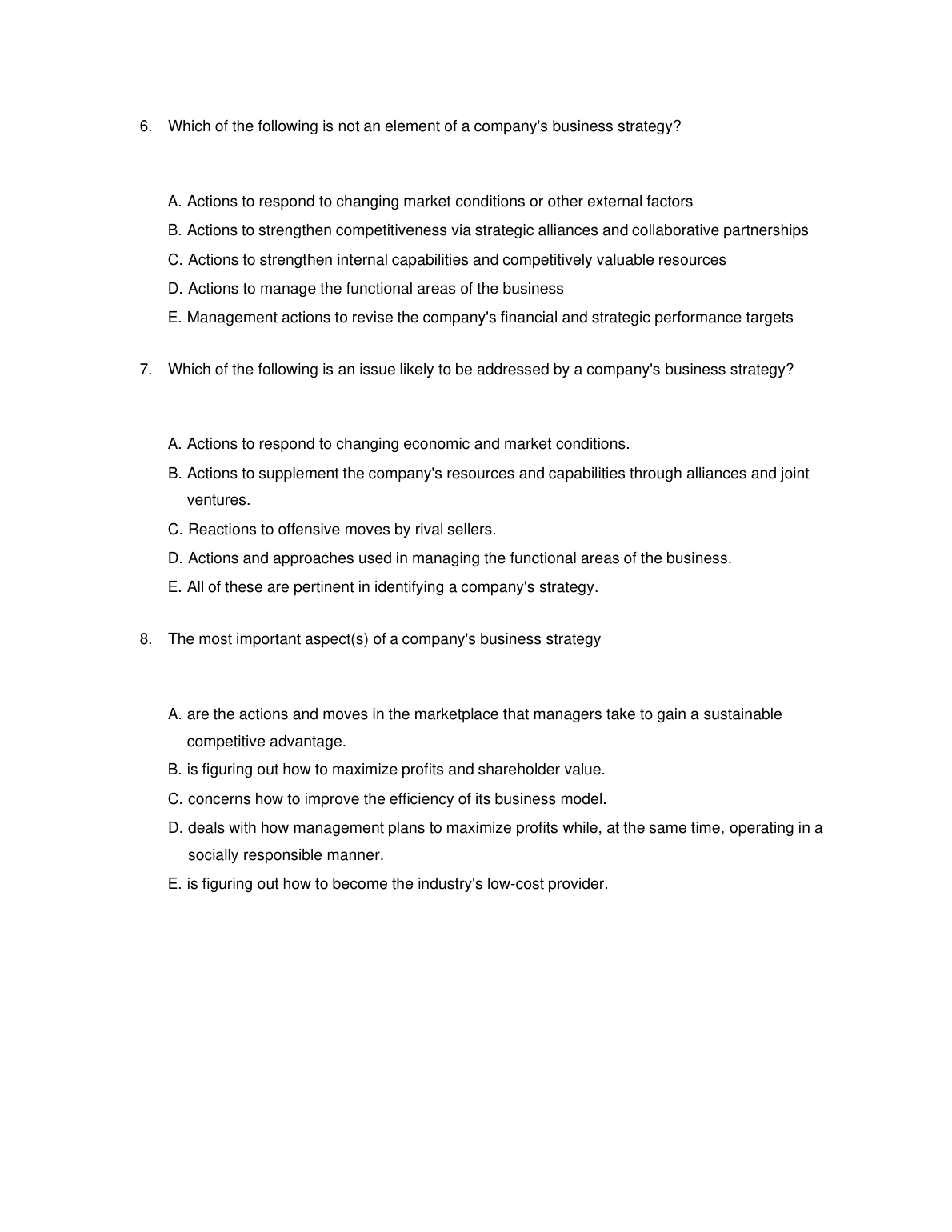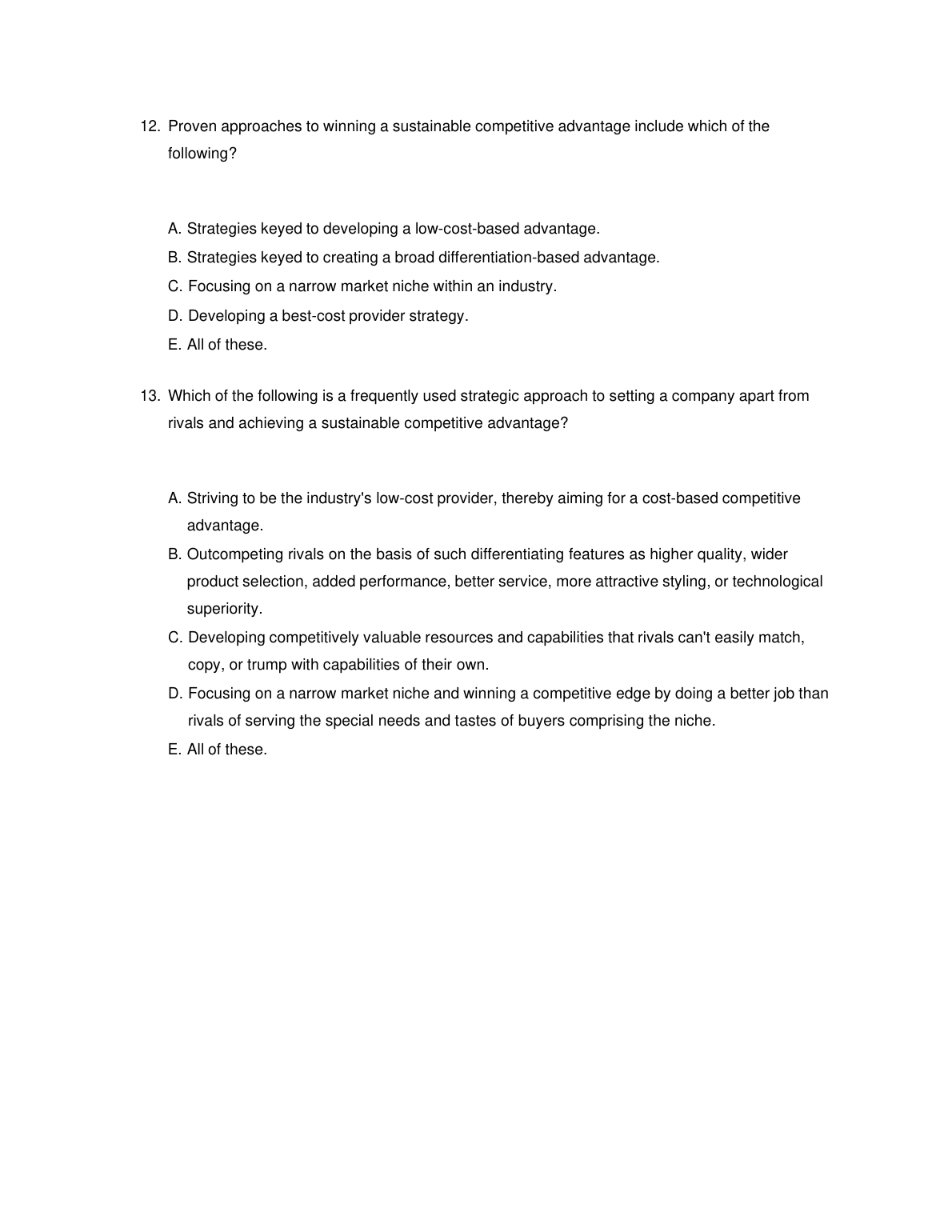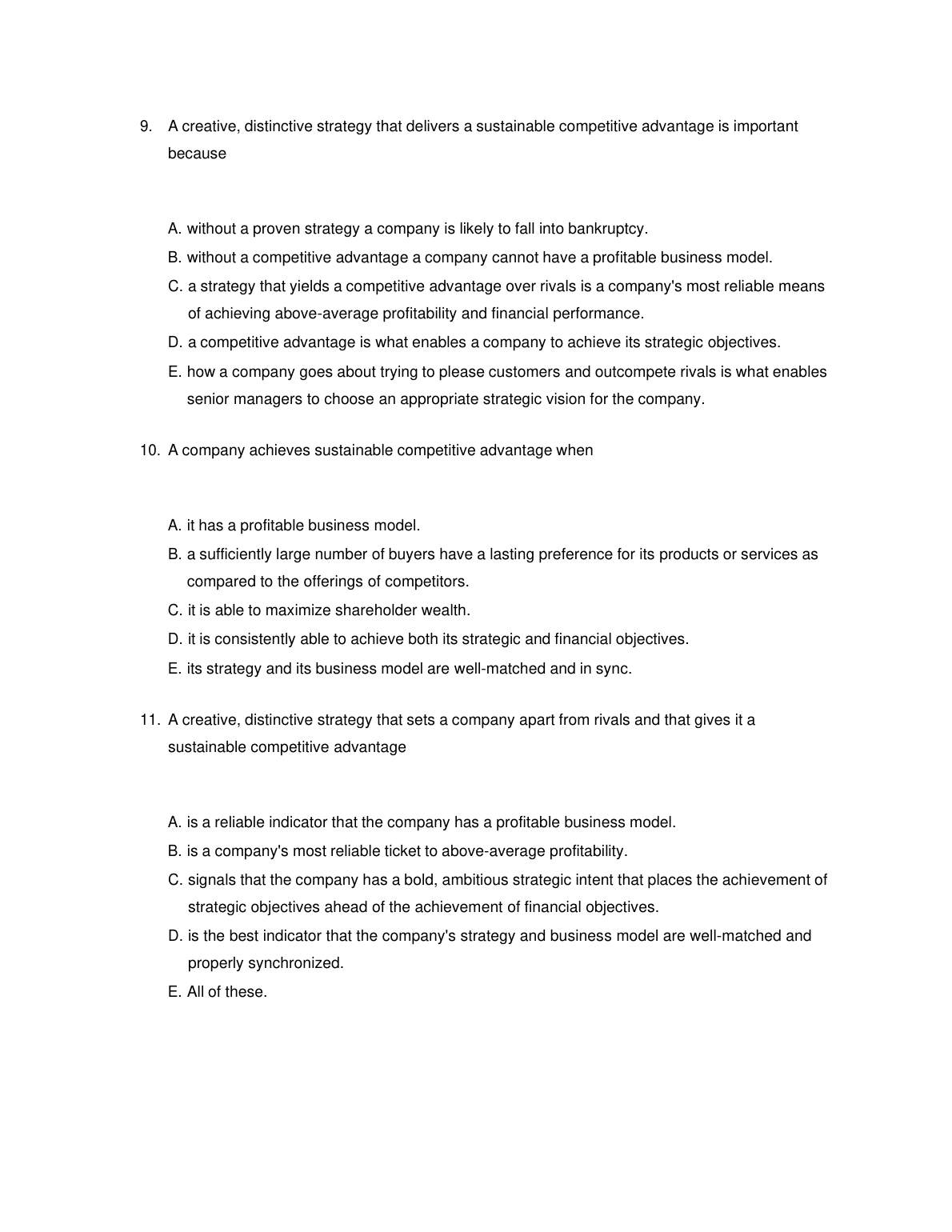 Essentials of Strategic Management The Quest for Competitive Advantage [test bank] by John E. Gamble, Margaret A. Peteraf, Arthur A. Thompson, Jr