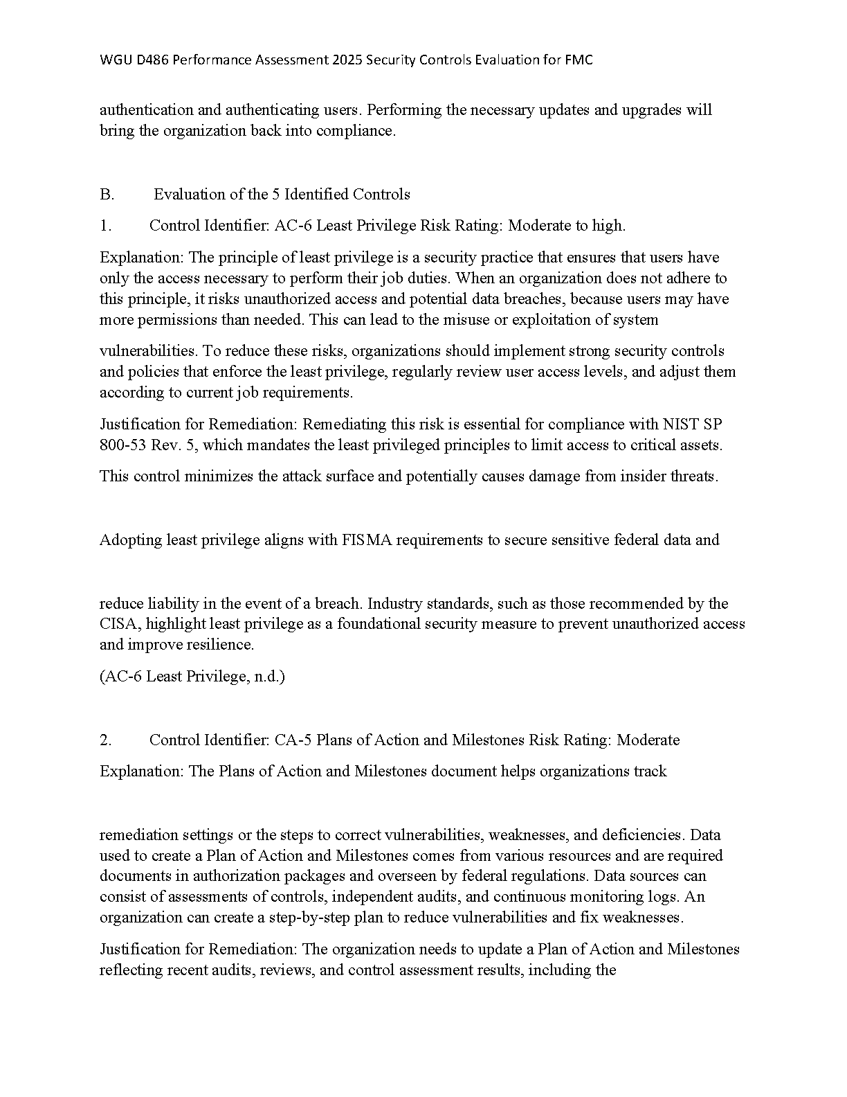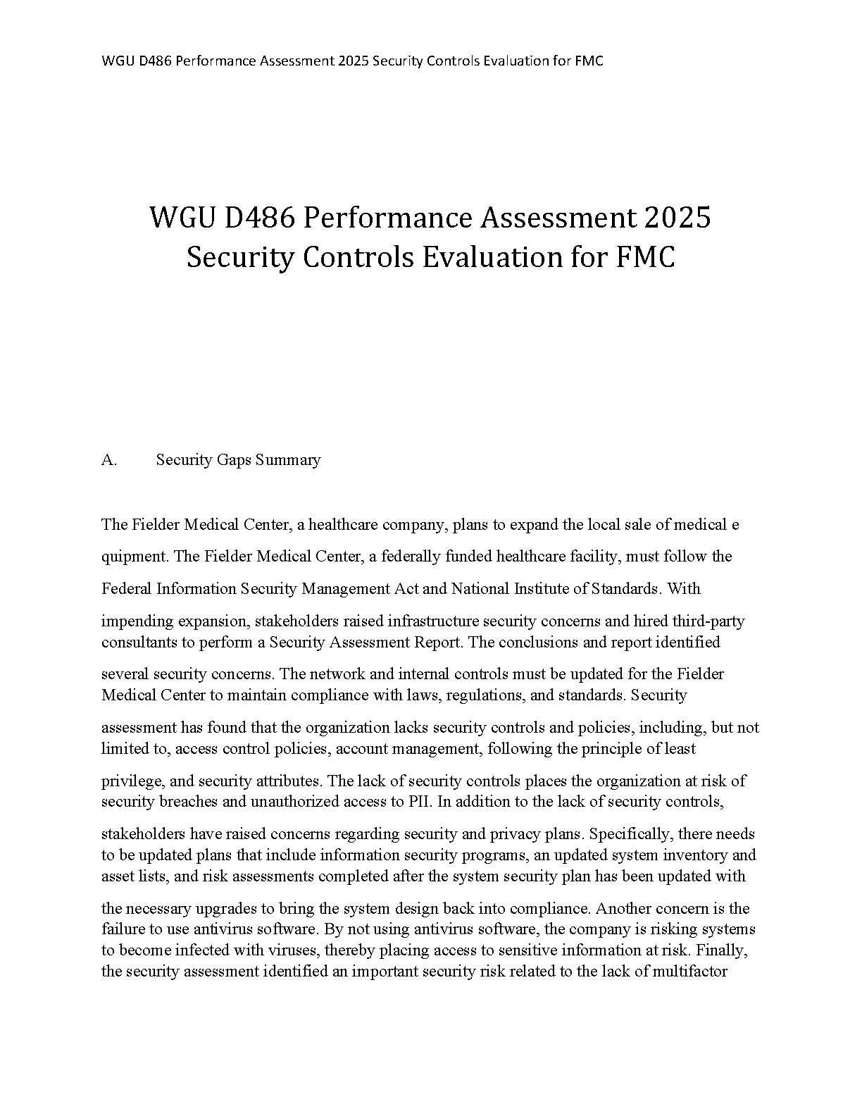 WGU D486 Performance Assessment 2025 Security Controls Evaluation for FMC: A Guide to Passing Exams on the First Attempt