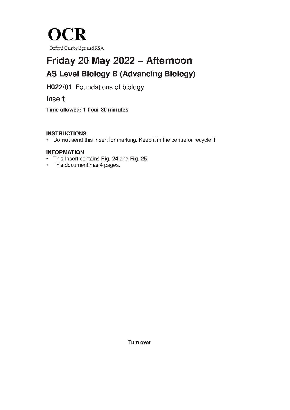 OCR AS BIOLOGY B PAPER 1 JUNE 2022 INSERT (H022/01: Foundations of biology). DOWNLOAD OFFICIAL AND VERIFIED OCR AS BIOLOGY B PAPER 1 JUNE 2022 on www.hackedexams.com INSTANTLY.