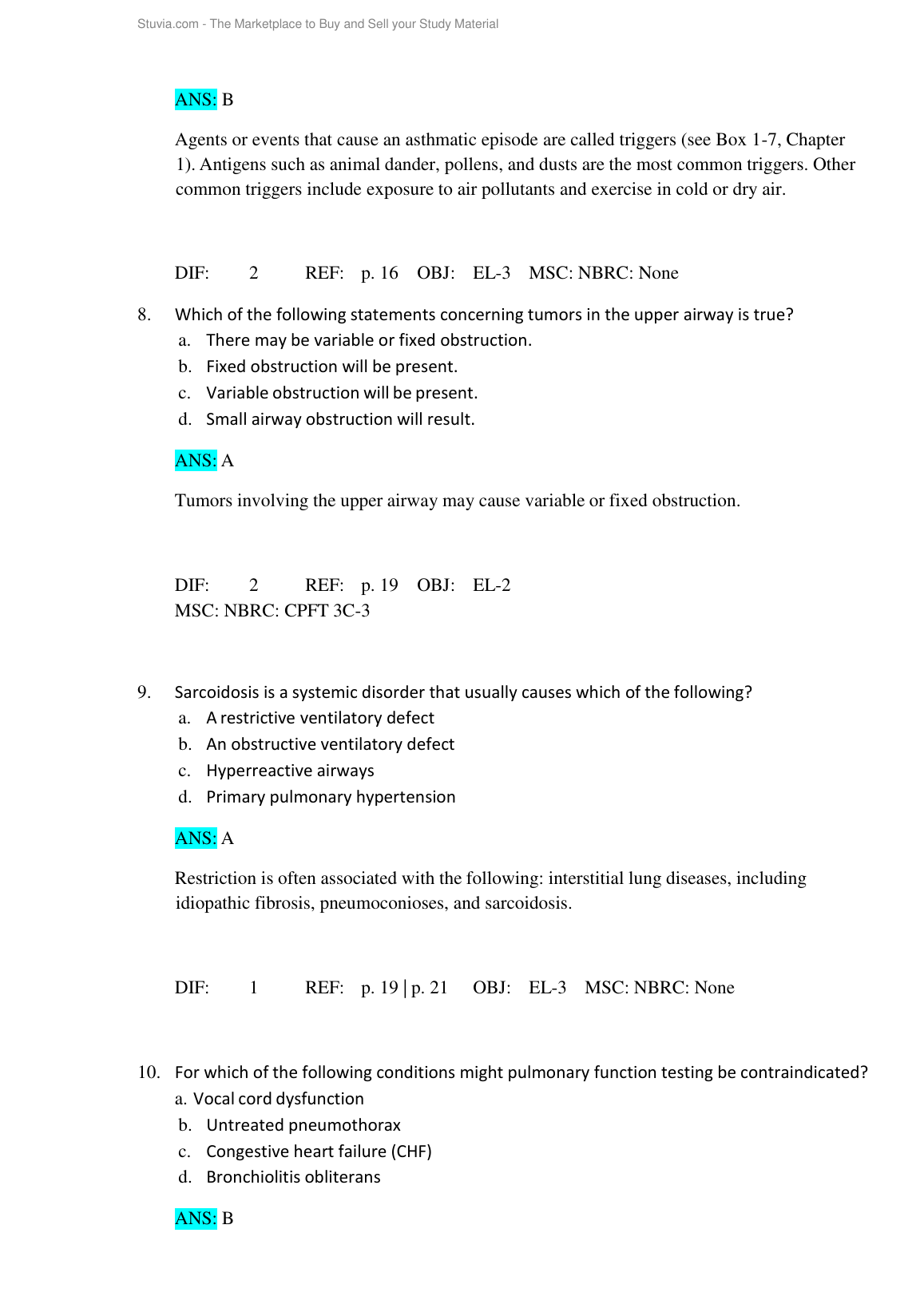 TEST BANK FOR RUPPEL’S MANUAL OF PULMONARY FUNCTION TESTING 11 TH EDITION BYMOTTRAM